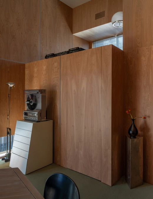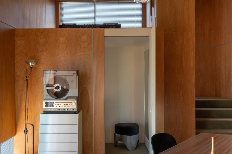 Projektantka ze Swike Design oparła swoją koncepcję na naturalnych materiałach i precyzyjnie zaprojektowanej zabudowie. Wykonane na wymiar elementy z czerwonej brzozy tworzą estetyczne i funkcjonalne tło. Na przykład mieszczą sprzęt, czy ukrywają przewody. Dzięki nim studio przypomina bardziej kameralną pracownię niż sterylne studio nagrań.