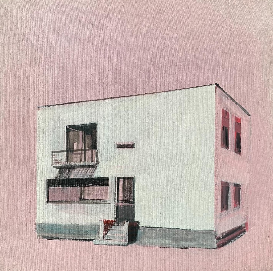 Zdj.główne: Łukasik Jarosław, "Korpokracja. Przerwa na papierosa" 2025, akryl na płótnie, 50x65cm
