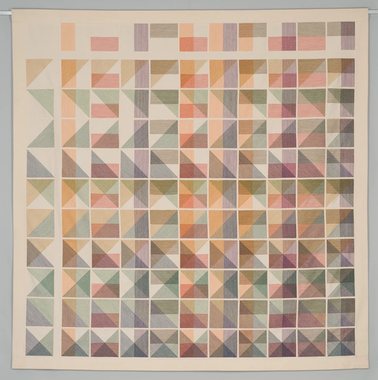 Emilia Bohdziewicz, W wyniku dodawania, haft maszynowy i szycie maszynowe, 1991 / Dzieło z kolekcji Centralnego Muzeum Włókiennictwa w Łodzi