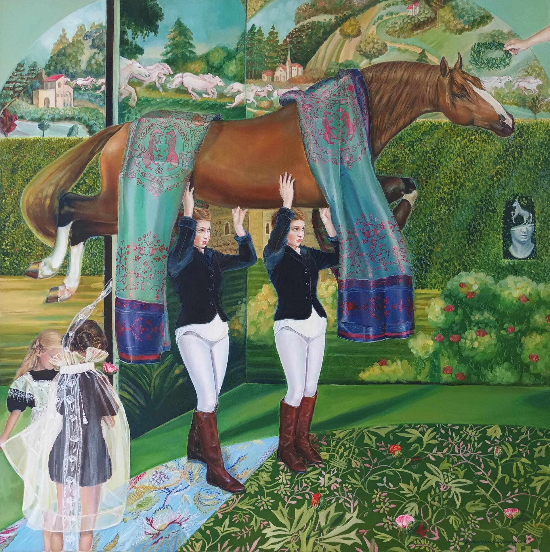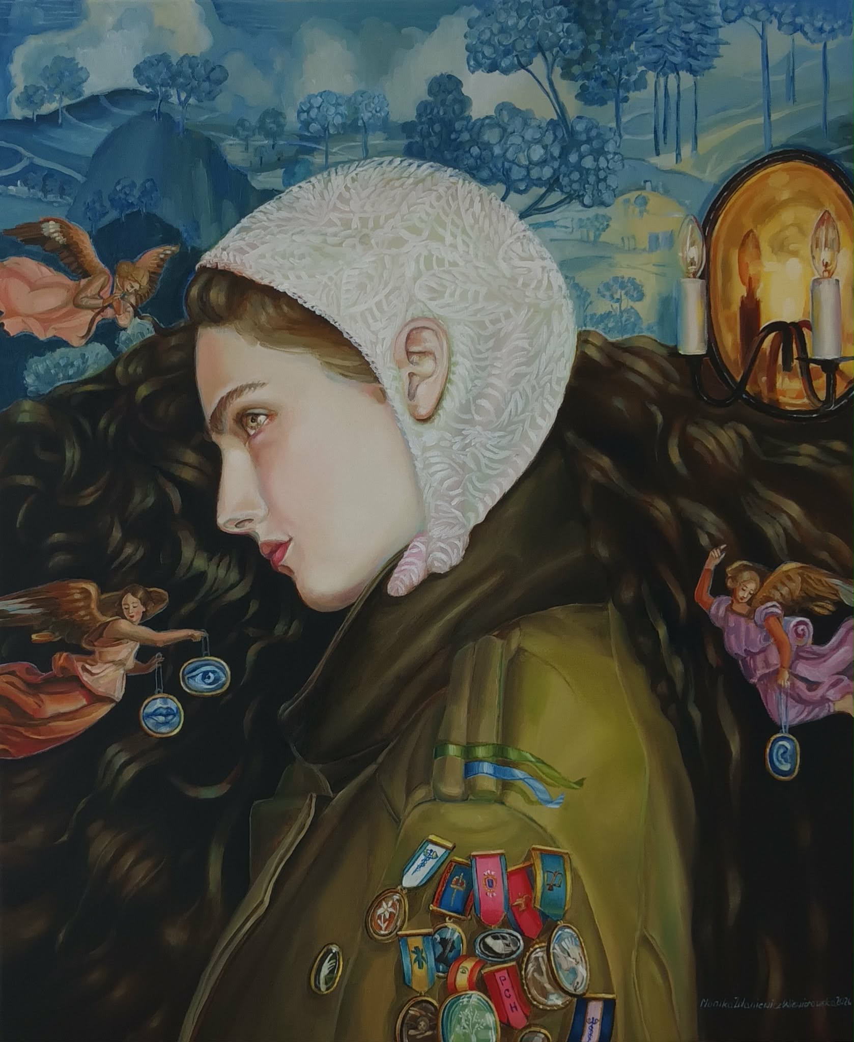 Obrazy Moniki Zdaniewicz-Wiewiorowskiej budują przestrzeń symboli, w której osobiste doświadczenia spotykają się z uniwersalnymi pytaniami o sens istnienia, odpowiedzialność i możliwość ocalenia tego, co najważniejsze. Ważnym wątkiem w twórczości artystki jest także rodzina, rozumiana jako bliskość, bezpieczeństwo i fundament relacji społecznych.
