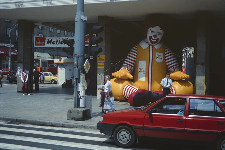 Edward Hartwig, Aleje Jerozolimskie, reklama restauracji McDonalds przed domem towarowym Smyk, 1992-1993, Muzeum Warszawy