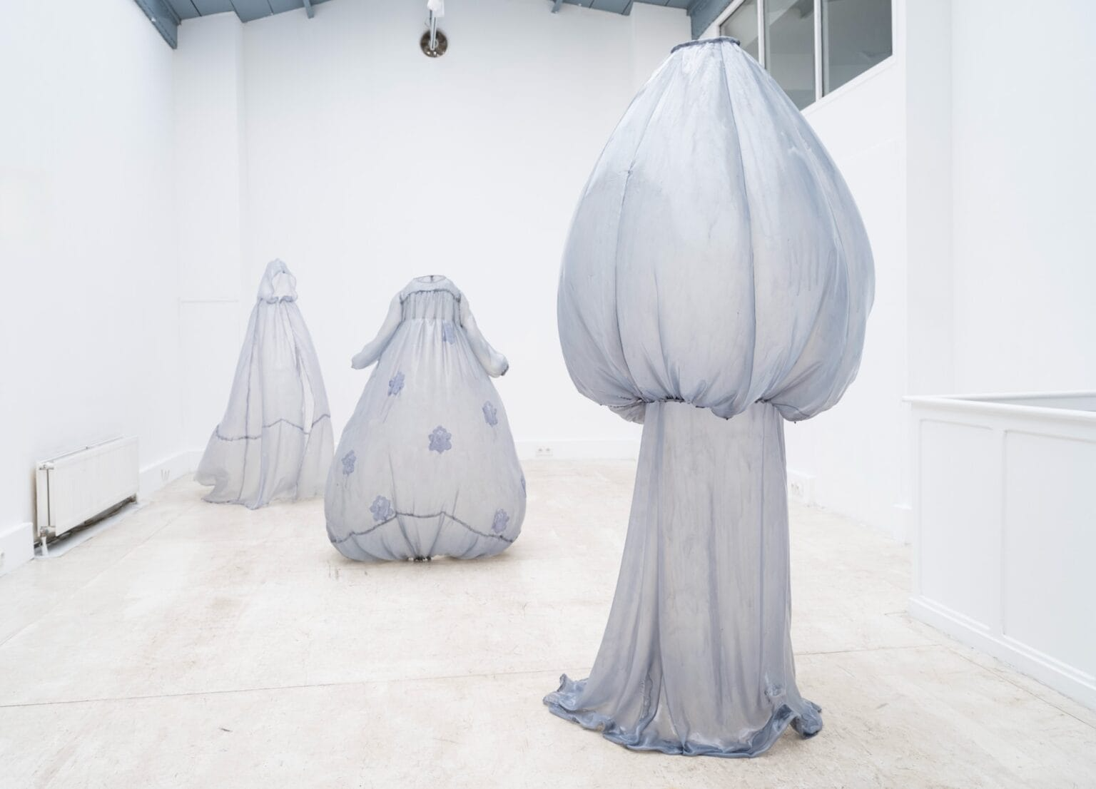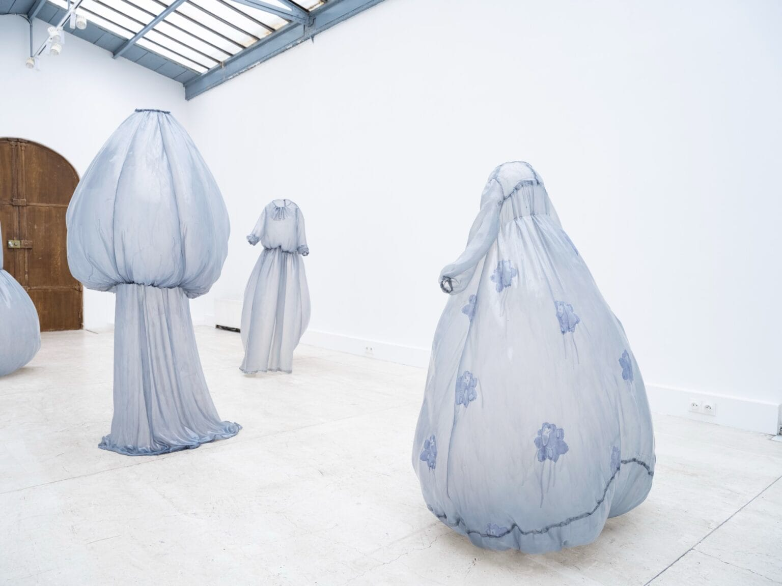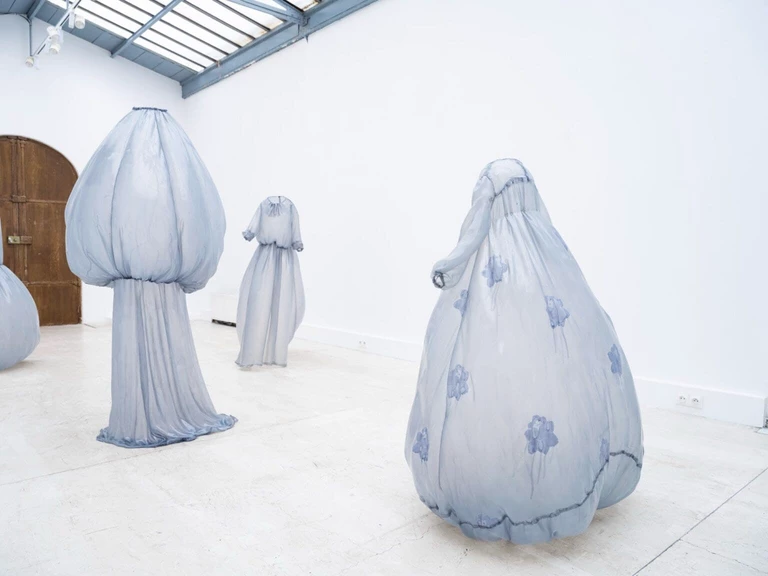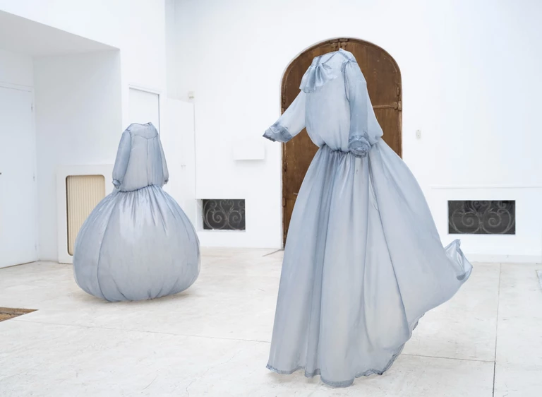Najnowsza wystawa widmowych sukien w jasnoniebieskim kolorze łączy w sobie modę i rzeźbę, a jej efektem są ubrania, które nie potrzebują ciała by się zmaterializować i zastygnąć w strzelistej pozycji. Gorsety są pełne, a spódnice ułożone pod takim kątem, jakby poruszały się wraz z niewidzialną właścicielką.