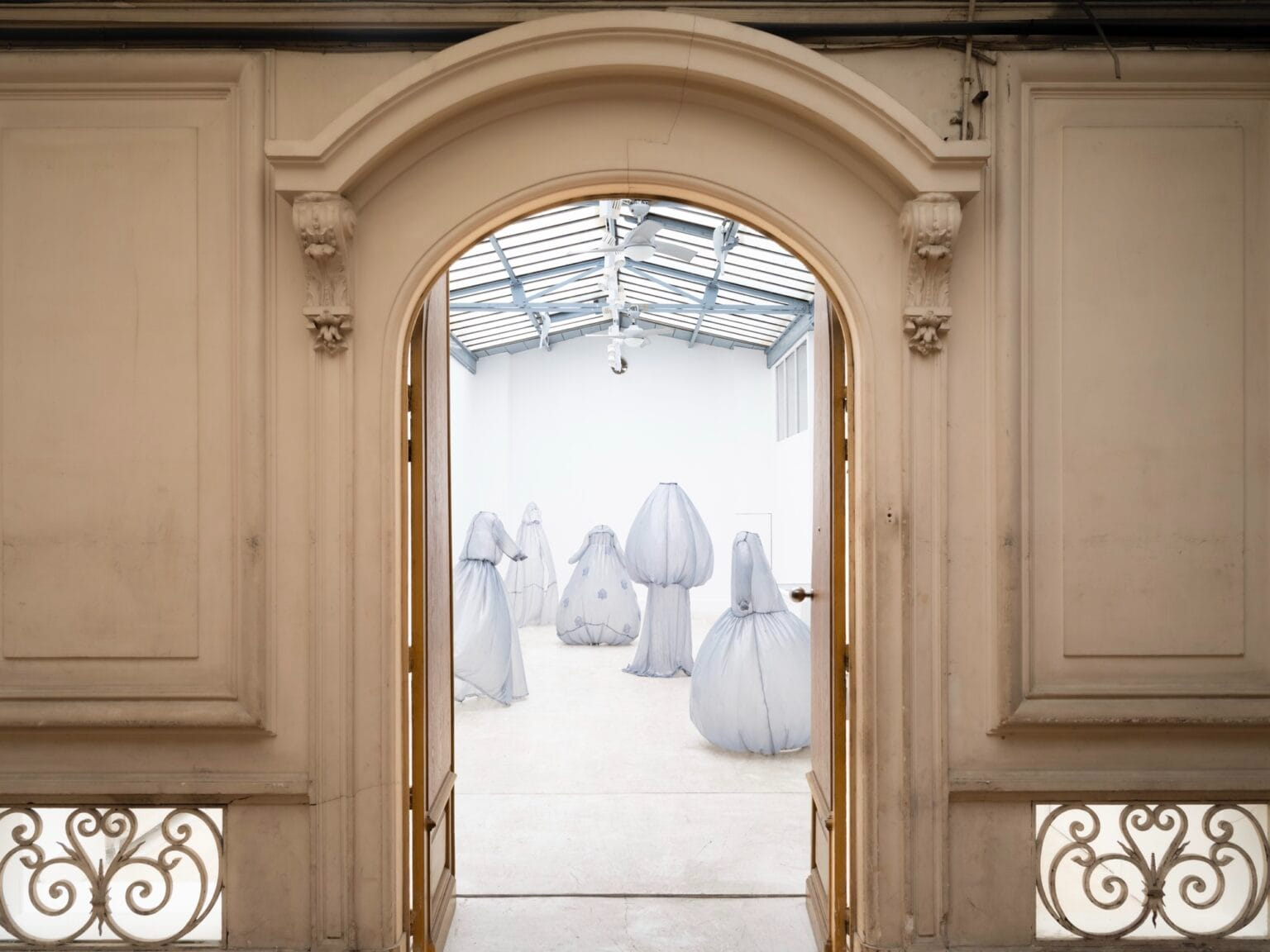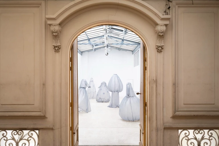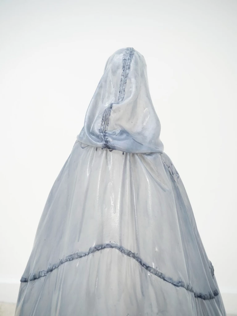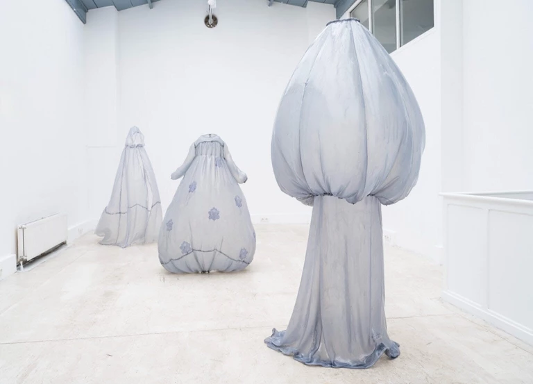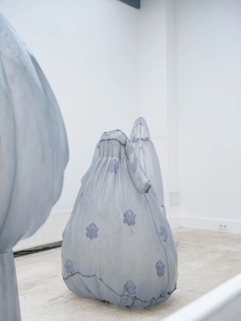 Najnowsza wystawa widmowych sukien w jasnoniebieskim kolorze łączy w sobie modę i rzeźbę, a jej efektem są ubrania, które nie potrzebują ciała by się zmaterializować i zastygnąć w strzelistej pozycji. Gorsety są pełne, a spódnice ułożone pod takim kątem, jakby poruszały się wraz z niewidzialną właścicielką.