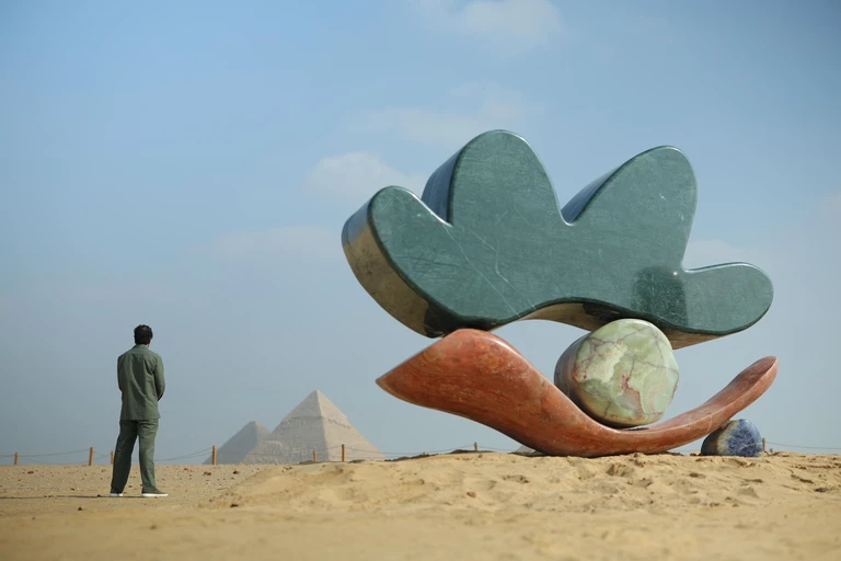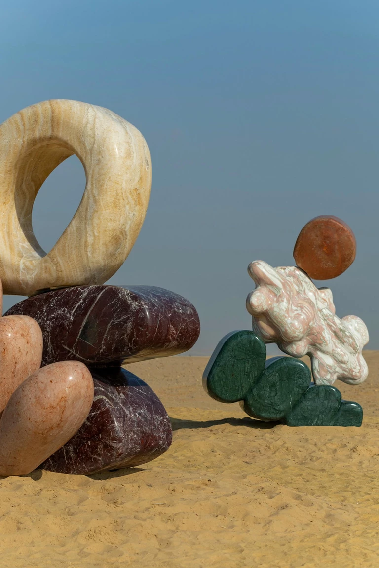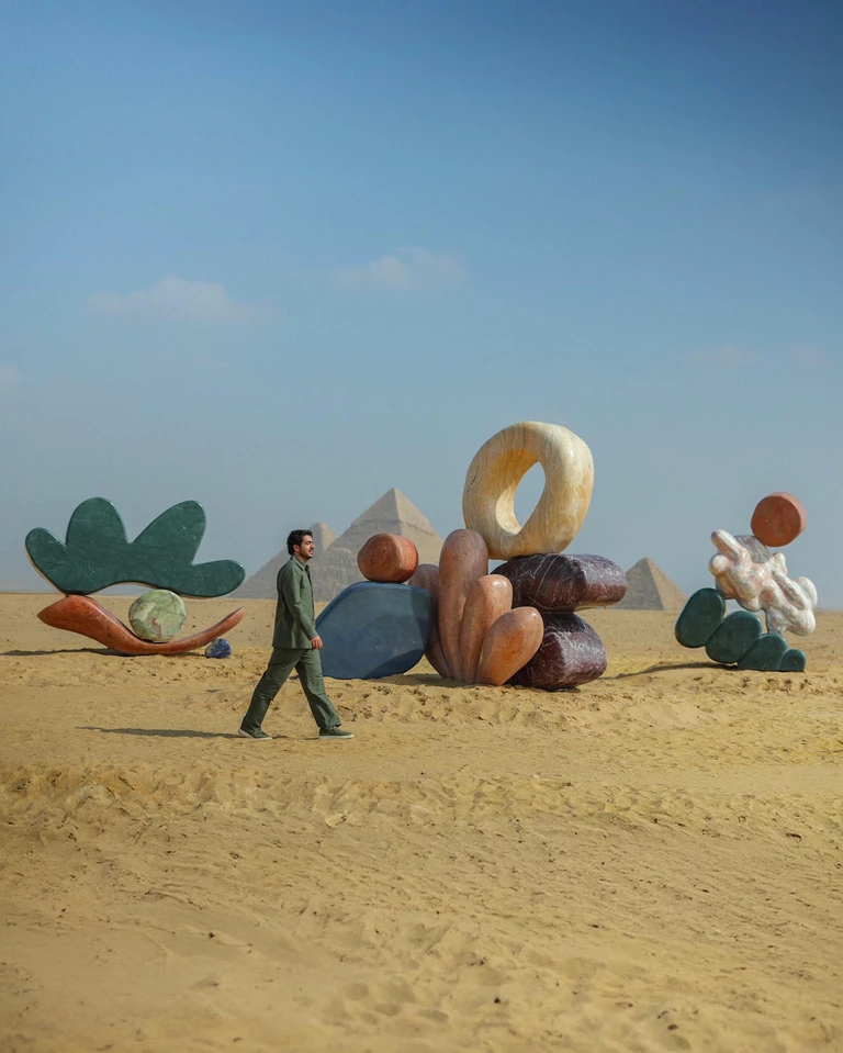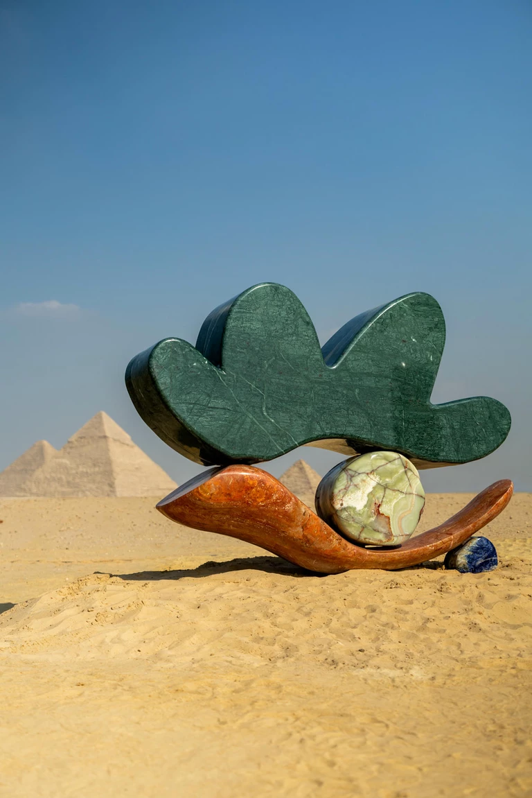 Projektowanie dla Gizy to pokora. Wchodzisz w dialog z najbardziej trwałymi symbolami cywilizacji – mówi artystka. – Ta instalacja opowiada o obecności, pamięci i historiach, które po sobie zostawiamy. Materiały same w sobie niosą żyły, kolory i wzory kształtowane przez tysiąclecia – już zawierają pamięć i emocje. Naszą rolą było uformować je w kształty, które mówią o przemianie, odrodzeniu i nieskończonym czasie.