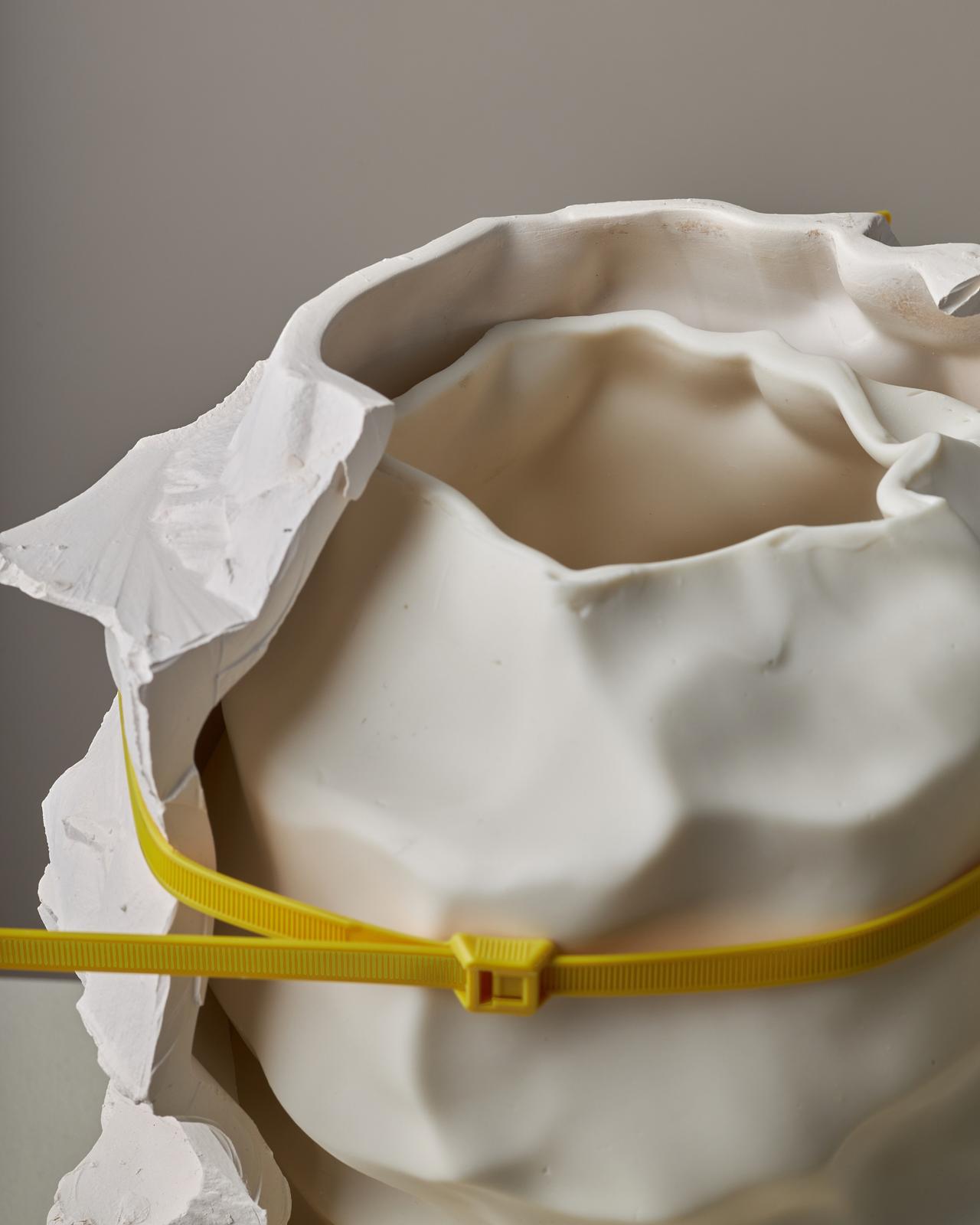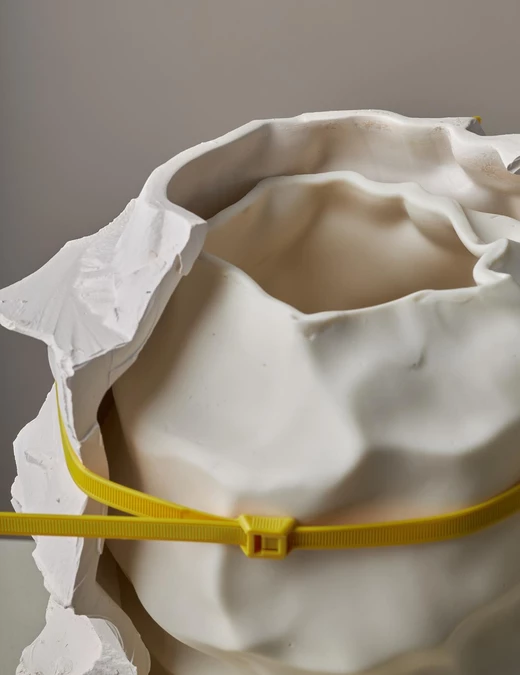 Gest artystyczny Patuszyńskiej można odczytywać jako symboliczne – ale i dosłowne – zerwanie z przemysłowym ideałem. Artystka rozbija i rozcina gipsowe formy, by następnie złożyć je na nowo w nieoczywistą konfigurację. Nie maskuje powstałych w ten sposób szwów, krawędzi czy pęknięć – przeciwnie, eksponuje je jako pełnoprawne elementy kompozycji. Doświadczenie zdobyte w fabrykach porcelany doprowadziło ją do wniosku, że są one nieodłączną cechą materiału, wyrazem jego natury. Zamiast unikać problemów technologicznych, artystka świadomie je prowokuje.