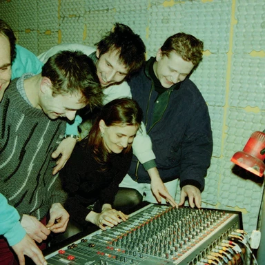 Scena z miasta. Wrocław niezależny lat 90. Zespół Kormorany w swoim studio w PWSSP, 1995, fot. Paweł Czepułkowski