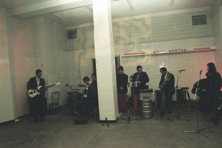Zdj.gł.: Koncert zespołu Kormorany w sklepie mięsnym przy ul. Kuźniczej w ramach akcji „Nieporozumienie”, 1995, fot. Bartosz Wawryszuk