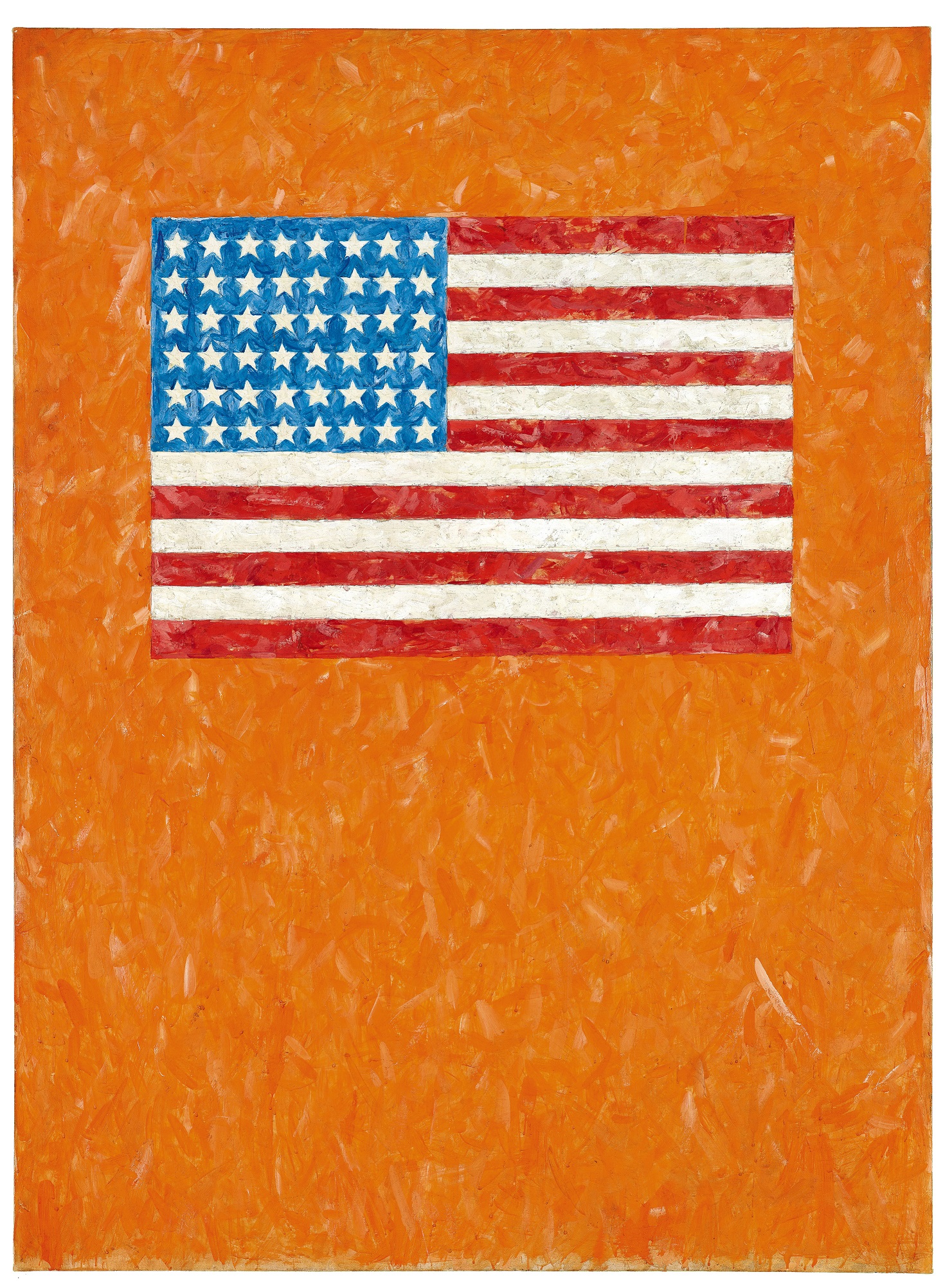 Flag on Orange Field, 1957 Encaustic on canvas 167.6 x 123.8 cm Museum Ludwig, Cologne Gift, Ludwig Collection, 1976 © Jasper Johns, VEGAP, Bilbao, 2026