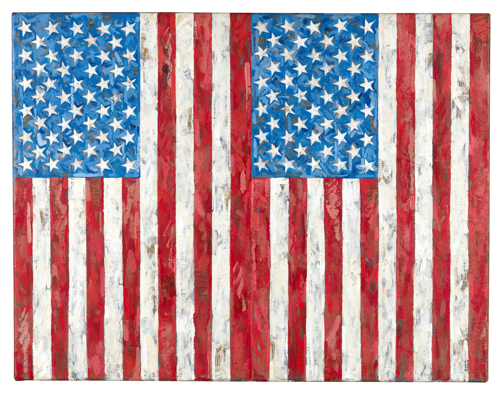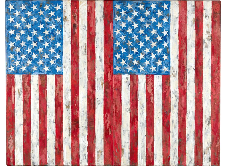 Flags, 1987 Encaustic and collage on canvas 65.5 x 83.8 cm Collection of the artist © Jasper Johns, VEGAP, Bilbao, 2026