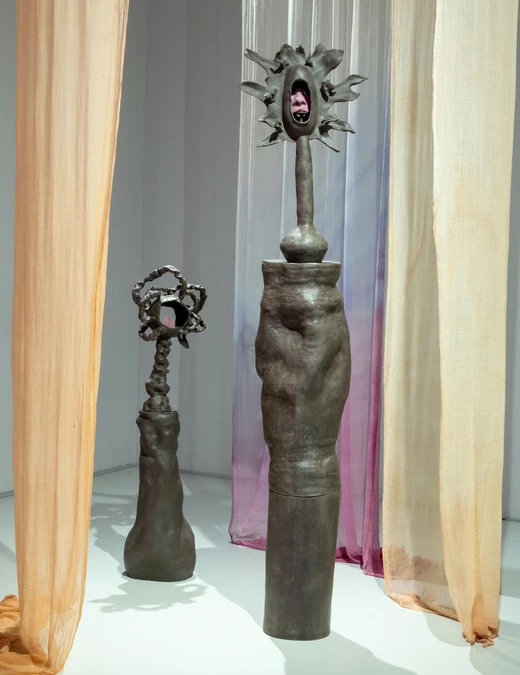 Punktem wyjścia są osobiste wspomnienia z okresu dorastania oraz refleksje nad własnym pochodzeniem – polsko-senegalską tożsamością, pamięcią i tym, co pomiędzy. „Voicerals” – tytuł, który mógłby być przetłumaczony jako „głosotrzewia” – to kolejny już rozdział archiwum, które od kilku lat buduje Ngom. Instalacja będzie składać się m.in. z ceramicznych rzeźb, których formy balansują między abstrakcją a figuracją.