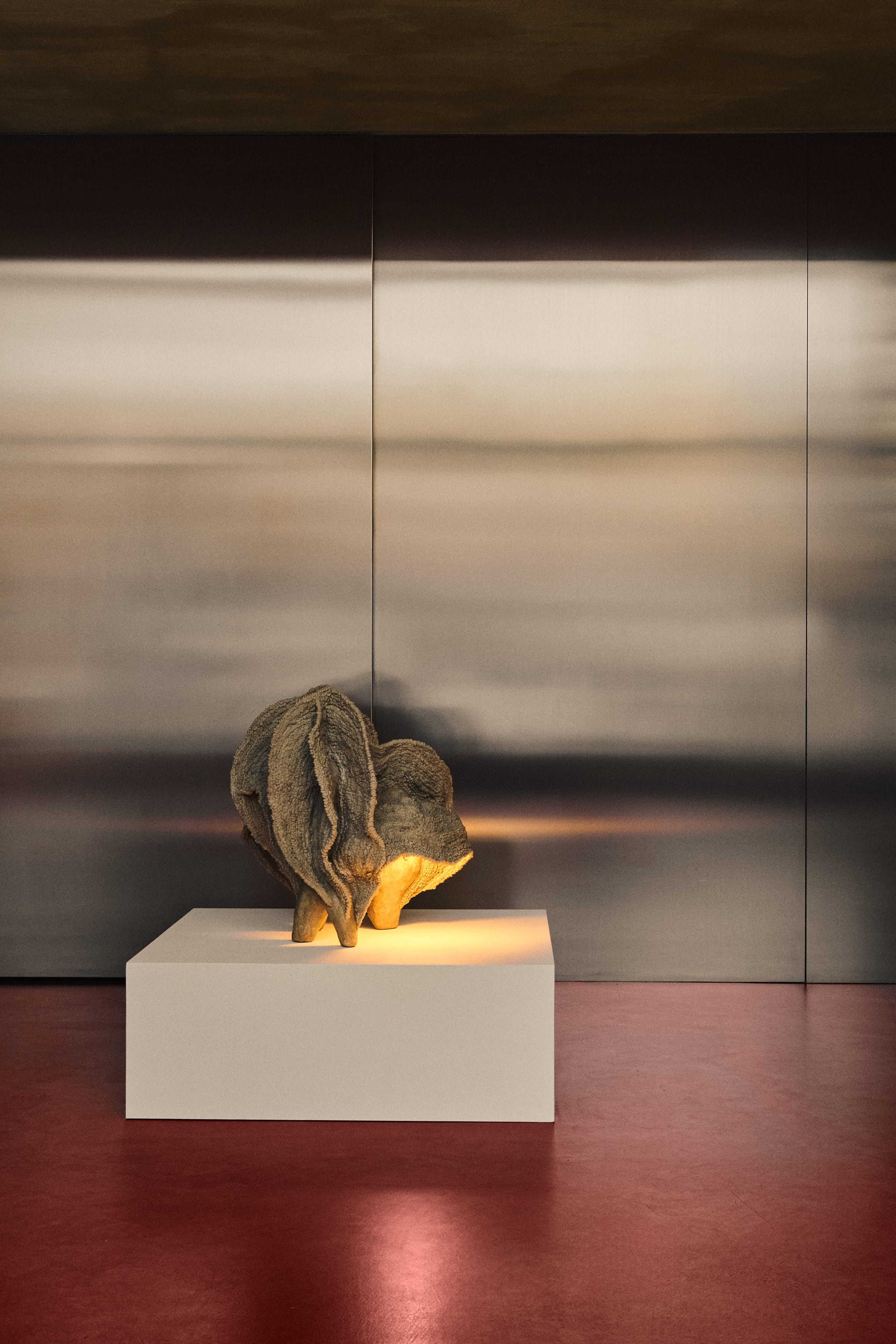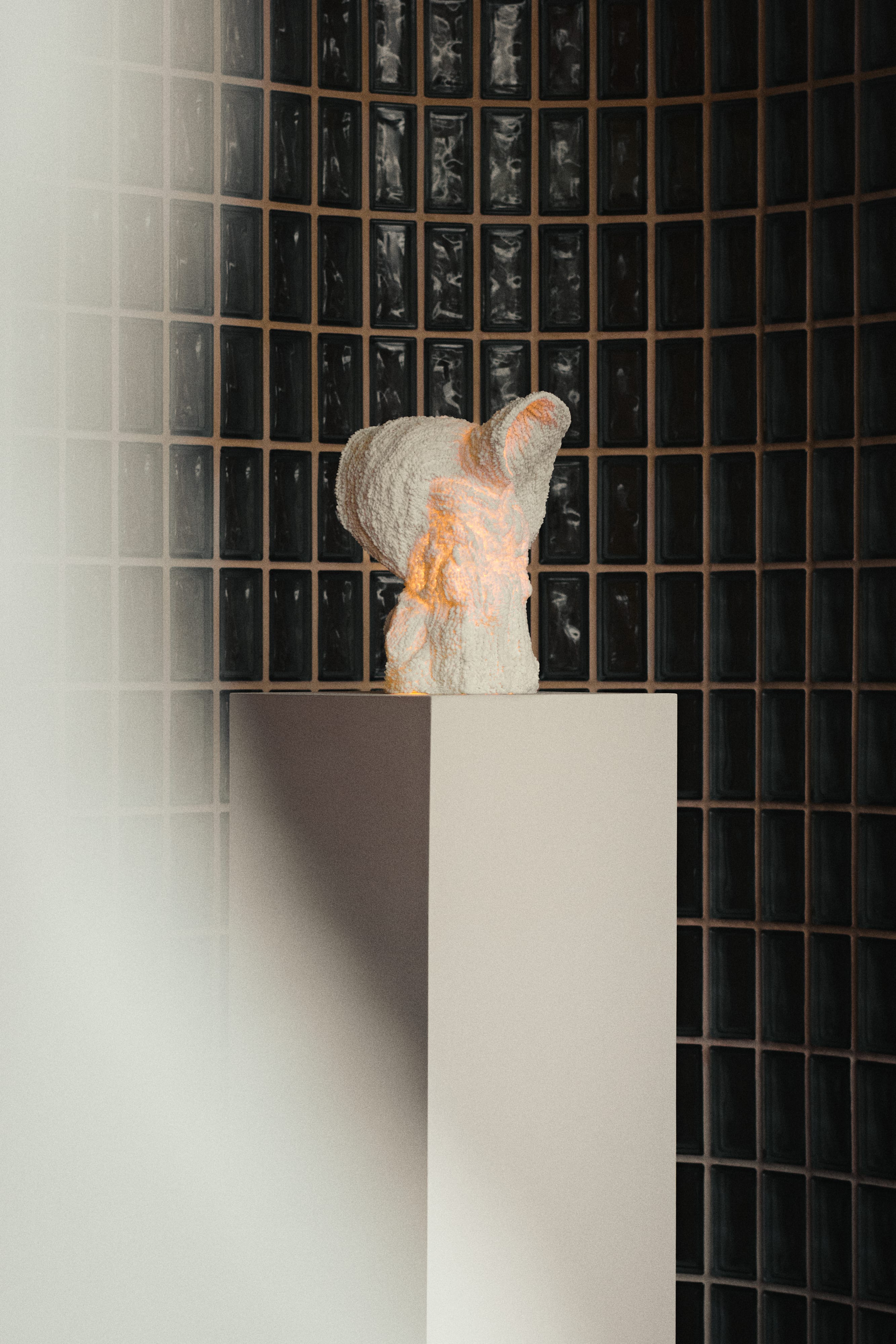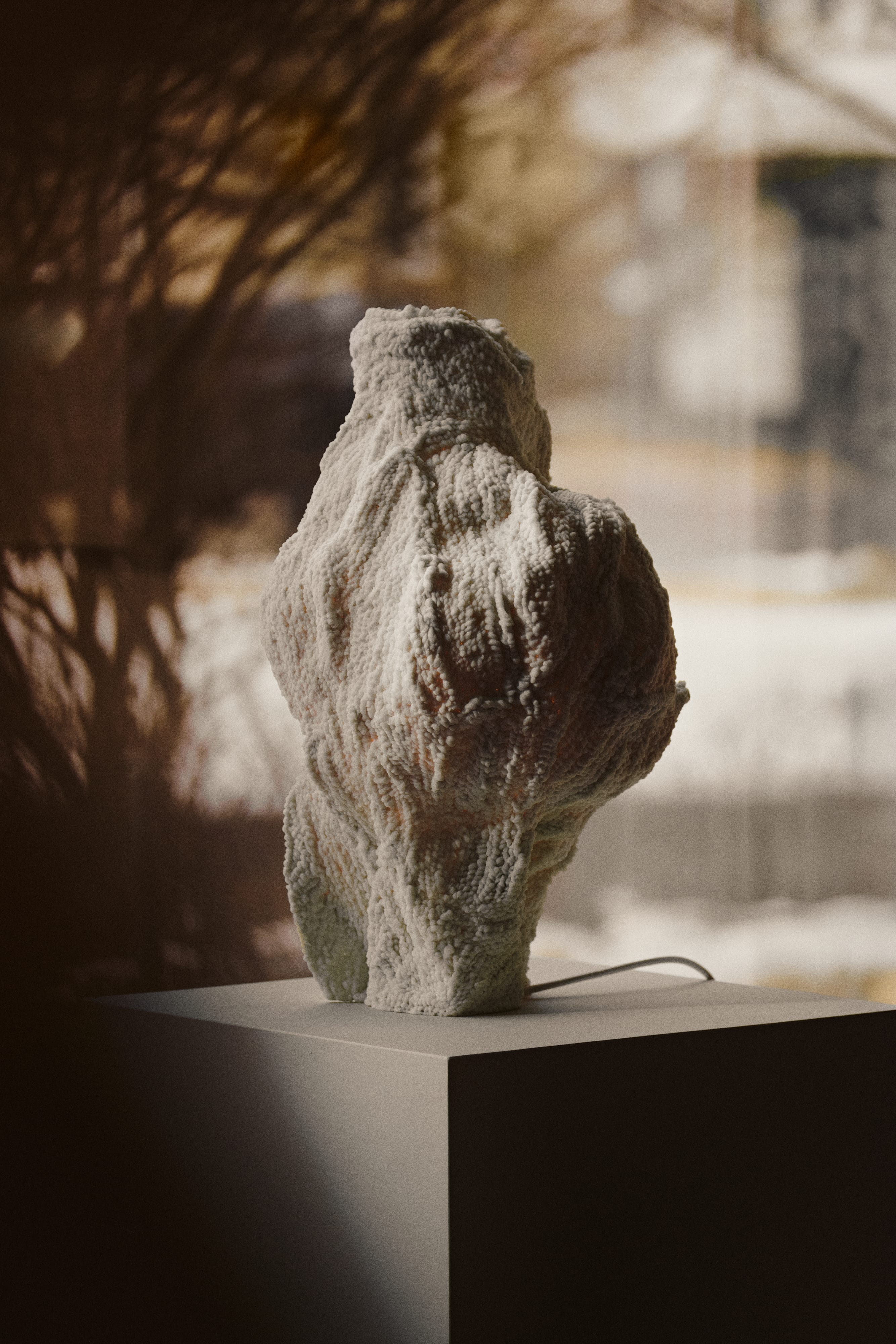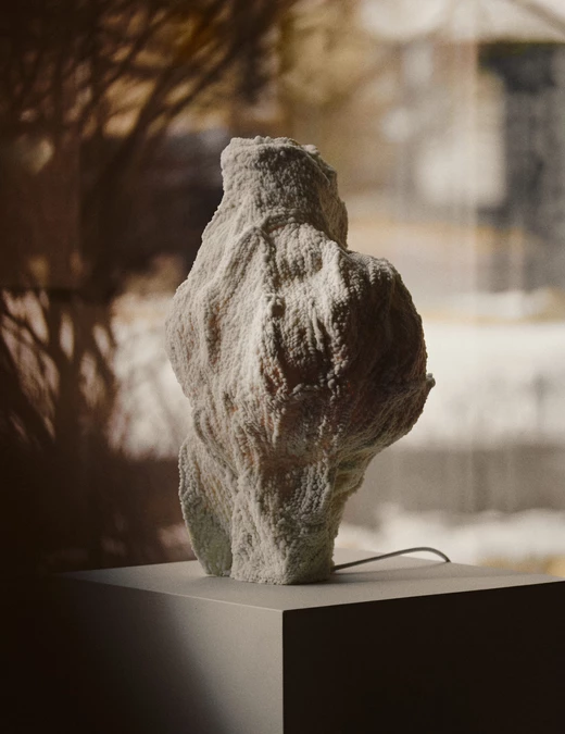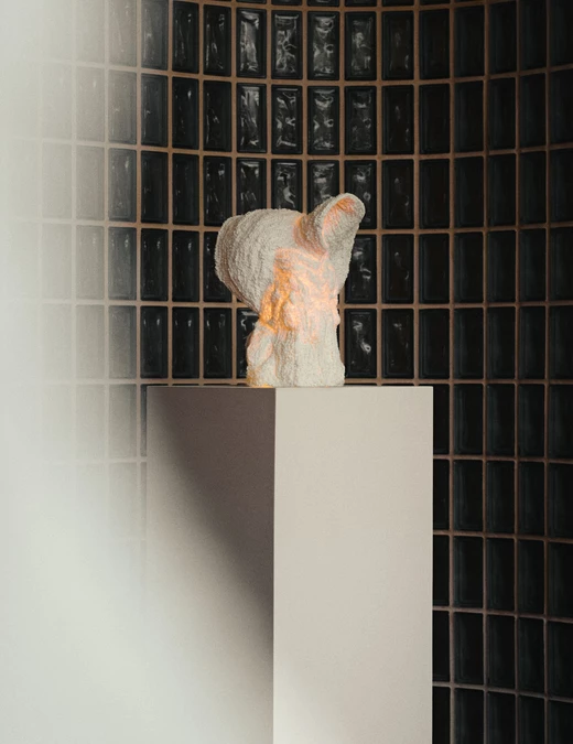 Agnieszka Mazur tworzy swoje lampy z piasku kwarcowego oraz pyłu zawierającego drobiny muszli i organizmów morskich. Każda warstwa materiału nakładana jest manualnie w procesie przypominającym druk 3D. Obiekty funkcjonują jako źródła światła, a zarazem jako materialne znaki upływu czasu.