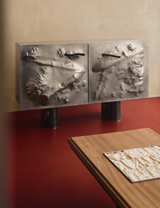 Wiktoria i Filip Bieliccy wykorzystują skany 3D fragmentów krajobrazu, które następnie przekształcają w metalowe formy przy użyciu technologii Incremental Sheet Forming. Ramię robotyczne modeluje cienkie arkusze aluminium, tworząc reliefowe fronty mebli z kolekcji Fragile Inner. Obiekty pełnią funkcję użytkową, ale równocześnie są pełnoprawnym dziełem sztuki.