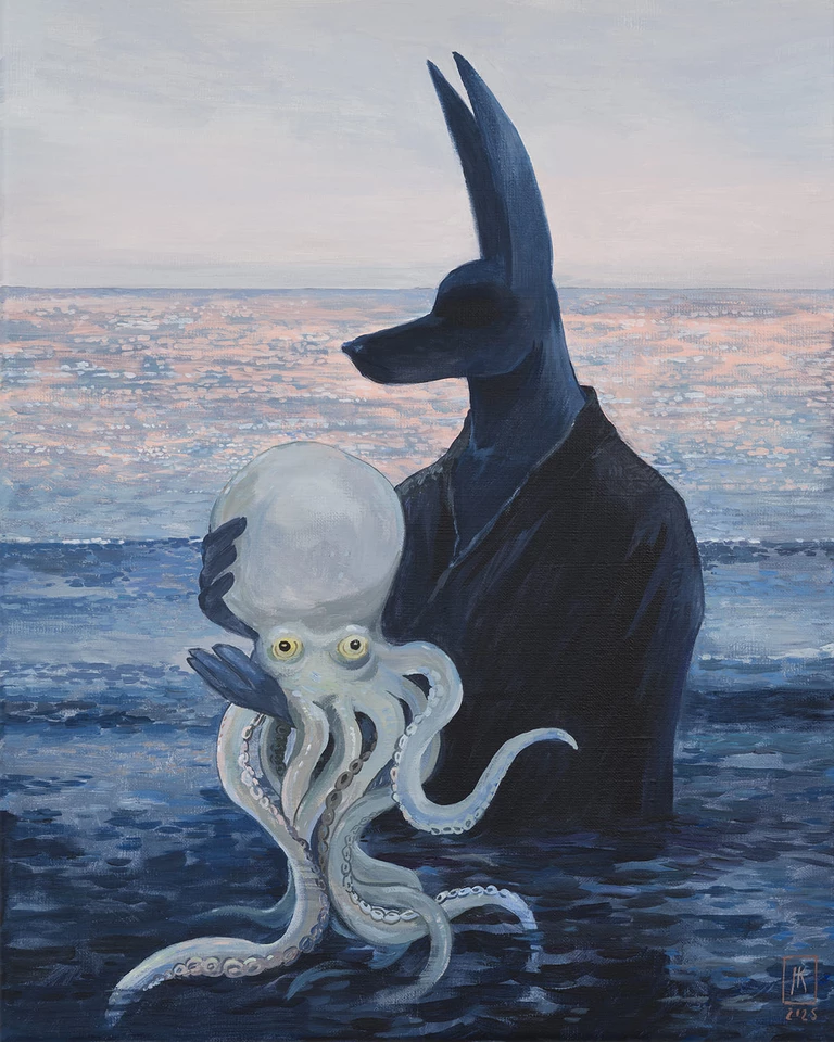 Do 31 października 2025 roku w krakowskiej Galerii Artemis można oglądać najnowszą wystawę Joanny Karpowicz – „Anubis i Yōkai 2”. To kolejna odsłona jej popularnego malarskiego cyklu z Anubisem.