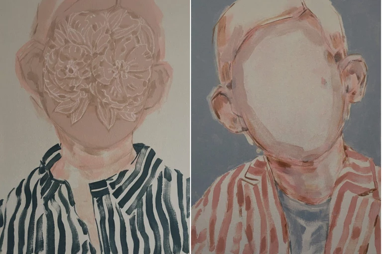 Autorka odbiera jednak widzowi możliwość spojrzenia głęboko w oczy swoim bohaterom. Odwraca wzrok, by wejrzeć w siebie samą. Stawia nas jedynie wobec znaku-manifestu stworzonego z dodatków, które szczelnie otulają roślinnością, wdrukowują się tuszem tatuażu-stygmatu lub zachowawczo poprawiają kołnierzyk. To powidok człowieka utkanego z tego, co poza nim samym. W sferze domysłów pozostają tu personalia portretowanych, jakby postaci zostały uchwycone w pół-trwaniu.