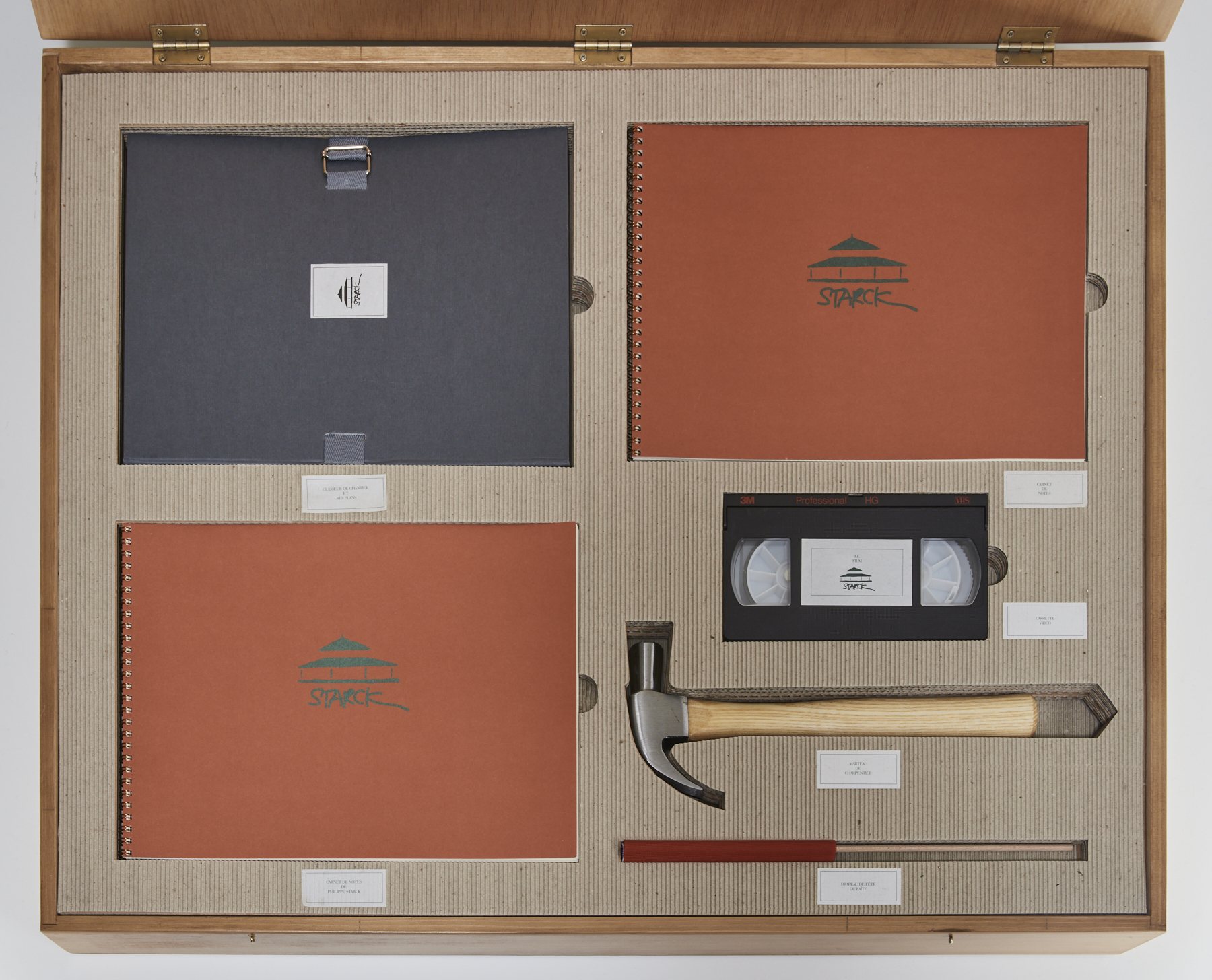 Sercem wystawy jest Maison Starck z 1994 roku, jeden z najbardziej niezwykłych eksperymentów w historii projektowania. To projekt domu, który można było kupić jako produkt z katalogu wysyłkowego 3 Suisses. Za 4900 franków nabywca otrzymywał pudełko z dokumentacją budowlaną, planami podpisanymi przez Patricka Bouchaina, kasetą VHS, młotkiem do wbicia pierwszego gwoździa oraz flagą do zawieszenia po zakończeniu prac. Zestaw uprawniał do budowy domu o powierzchni 140 metrów kwadratowych, maksymalnej dopuszczalnej we Francji bez udziału architekta, a całkowity koszt realizacji wynosił około miliona franków.