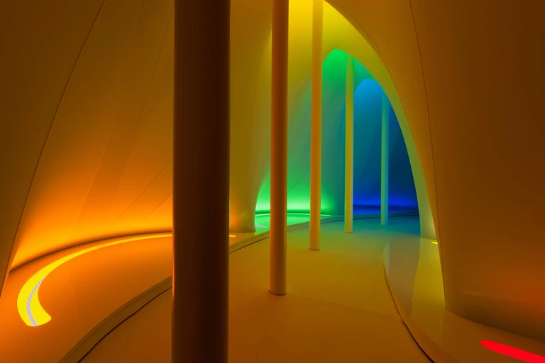 Centralnym punktem będzie instalacja „Spectrum, An Afterthought” – świetlne przejście zbudowane z kolorowych stref. To doświadczenie, które ma angażować wiele zmysłów: światłu towarzyszą dźwięki i zapachy dopasowane do poszczególnych barw. Widoczne jest tu zainteresowanie artystki synestezją.
