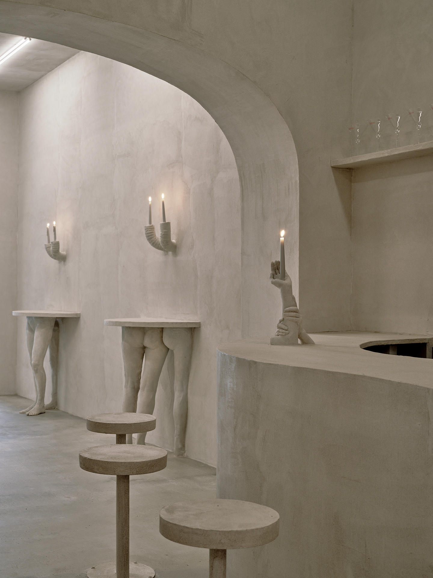 Rzeźbiarka Keith-Roach oraz malarz Page przekształcili to wnętrze w dzieło sztuki nawiązujące do antycznego i barokowego Rzymu. Jednocześnie pozostaje ono miejscem codziennego użytku. Inspiracją były historyczne bary i kawiarnie, takie jak Cabaret Voltaire, Colony Room czy rzymskie Caffè Greco, które w czasach politycznych napięć stawały się azylem dla artystów.