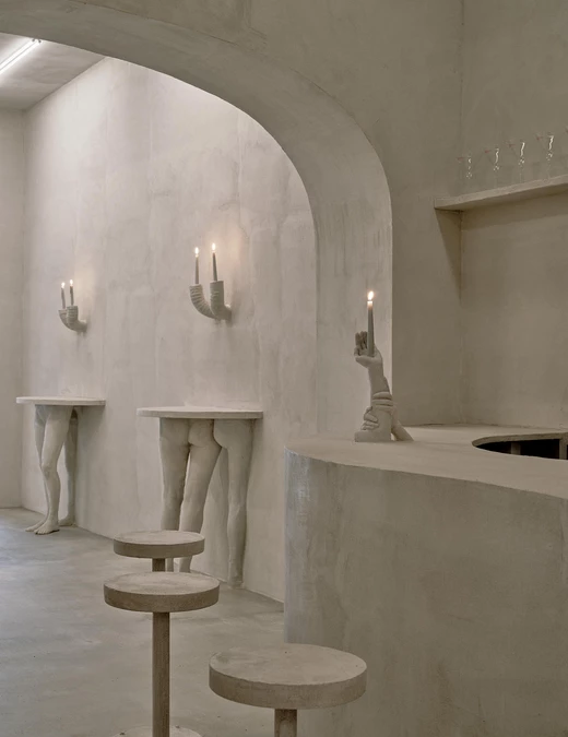 Bar Far jest miejscem niejako onirycznym, w którym warstwy znaczeń nakładają się na siebie: barokowy przepych spotyka się z architektoniczną surowością, a nawiązania do starożytności z intensywnymi, współczesnymi akcentami kolorystycznymi.