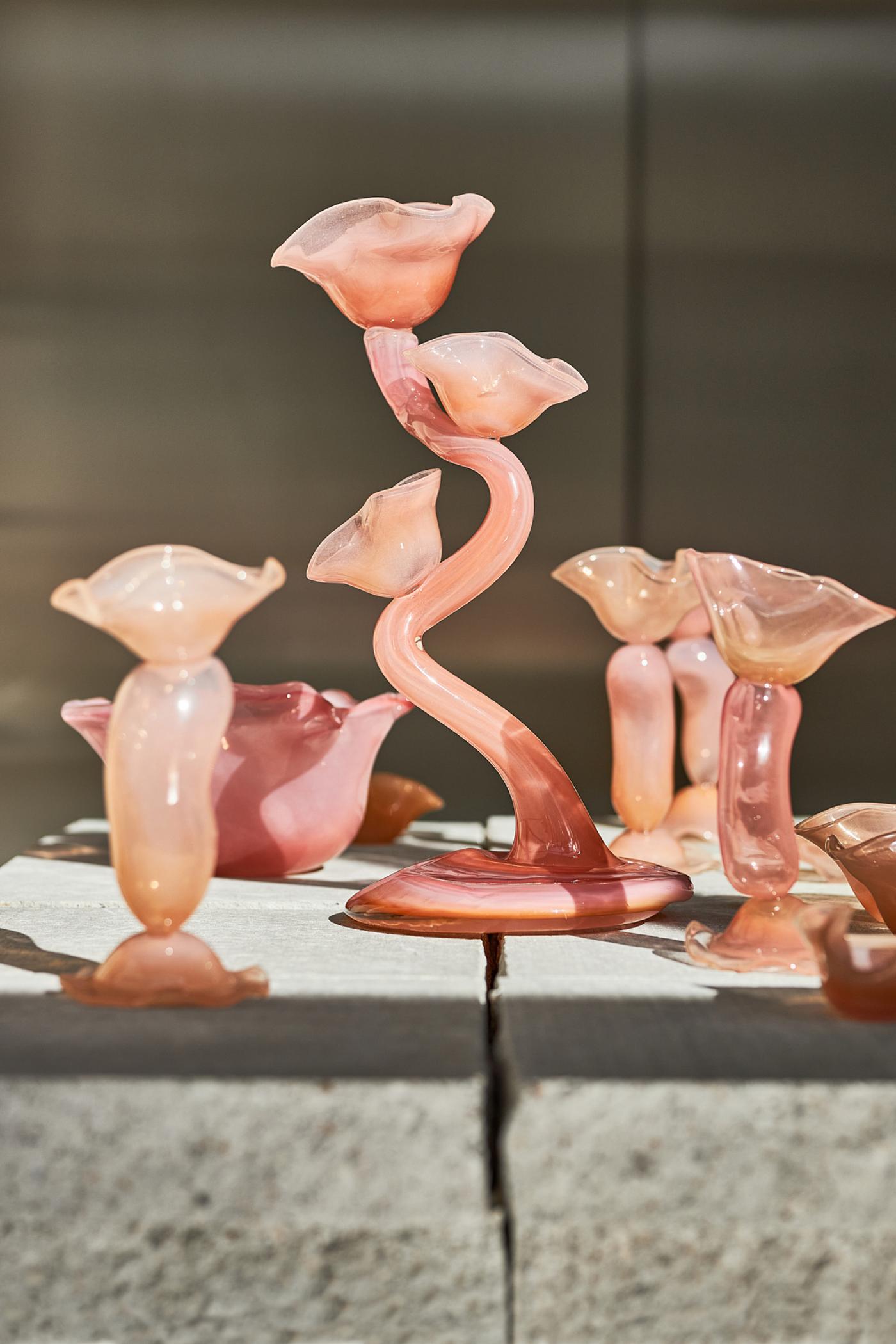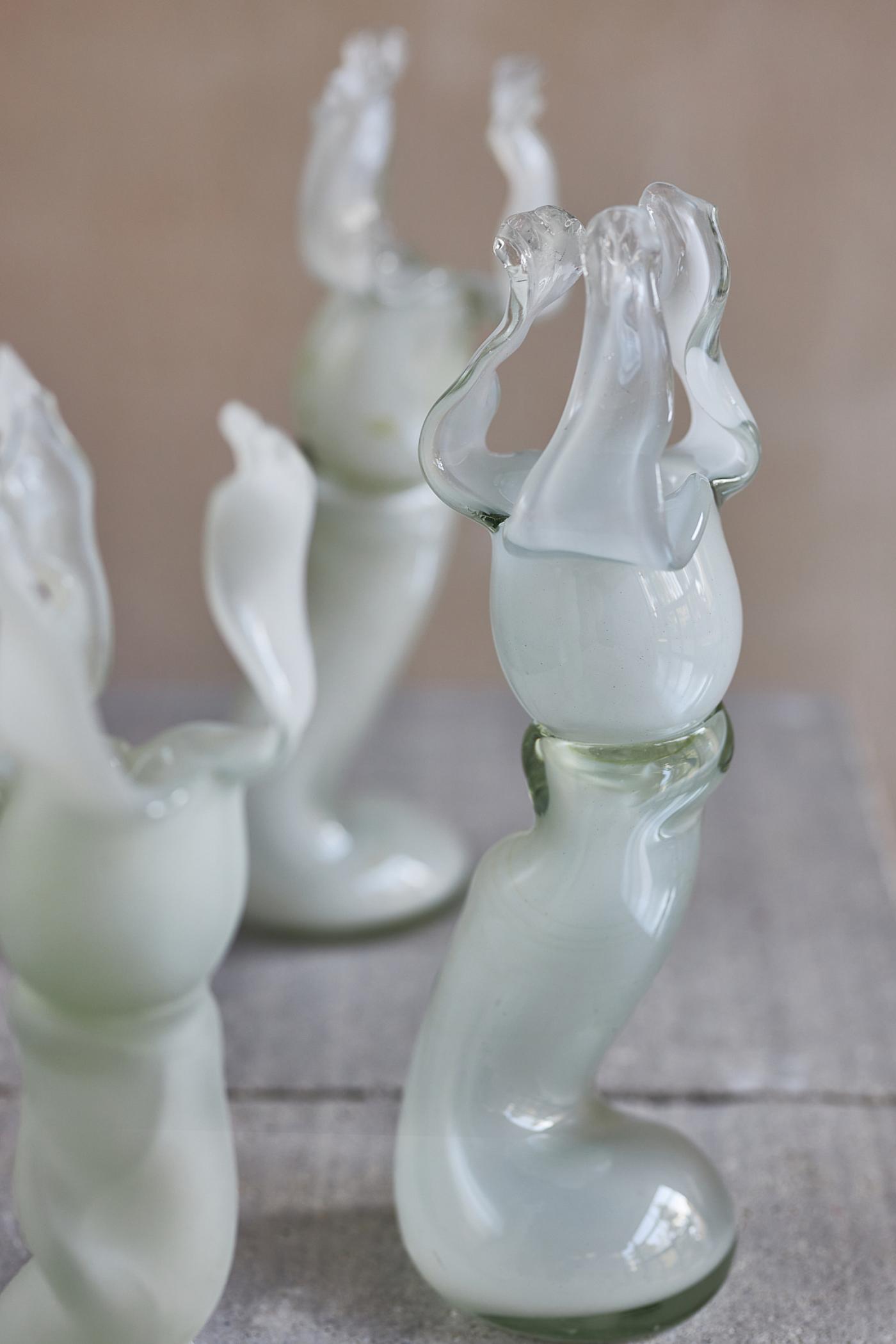 Filomena Smoła przeszła drogę od action painting do szkła – materiału, który reaguje na każdy oddech i ruch dłoni. W Stanach Zjednoczonych, gdzie pracowała w duchu American Studio Glass Movement, zrozumiała, że proces dmuchania szkła to nie tylko technika, ale swoisty taniec z materią. Jako jedna z nielicznych kobiet-dmuchaczek, napędza formy gestem i własnym oddechem, nadając im kształt poprzez czysto cielesny rytuał.