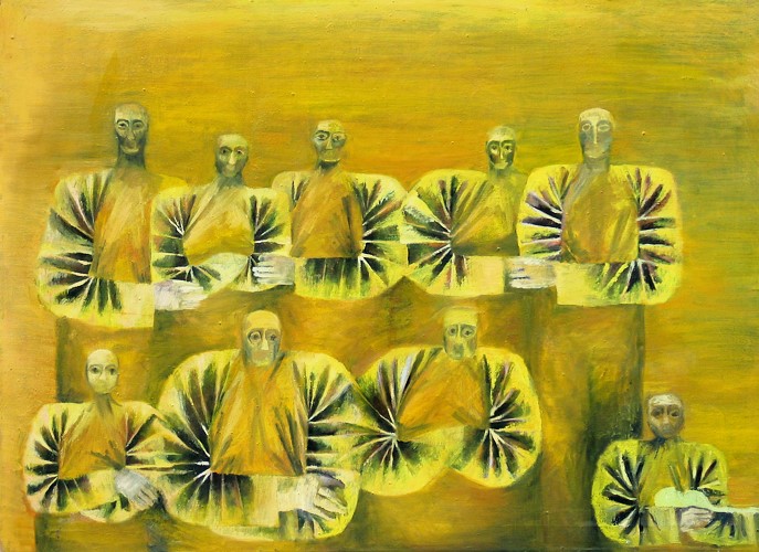 Kolejne prace rozwijają motyw uproszczonej postaci ludzkiej. Z czasem artystka budowała z nich zbiorowe portrety rodzinne, tworząc gęste układy figur, którym towarzyszy niepokojąca atmosfera. W tym samym czasie, gdy w galeriach dominowała abstrakcja geometryczna czy informel, artystka wybrała własną drogę – malowała powtarzalne, zanonimizowane sylwetki, układające się w rozbudowane sekwencje.
