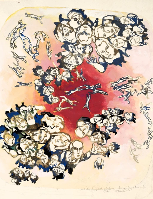 W Muzeum Architektury pokazano m.in. najbardziej znany cykl „Atomów” – wielkoformatowych prac, w których relacje między postaciami tworzą gęste układy napięć. Osobną część ekspozycji stanowią dzieła powstałe podczas kilkuletniego pobytu artystki w Nigerii: szkice, obrazy i obiekty przestrzenne, w których wyraźnie obecna jest witalność natury oraz element fantastyki.
