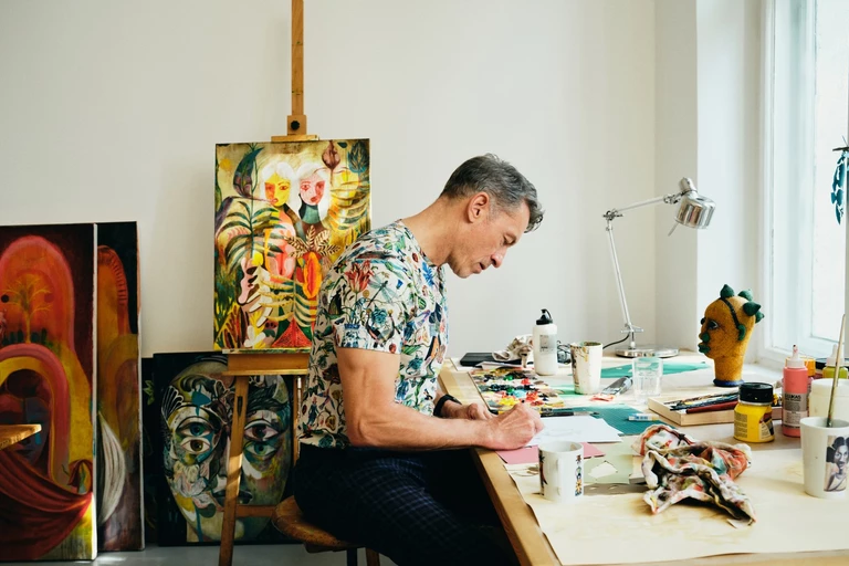 Olaf Hajek uwielbia projektować, dlatego ma na swoim koncie wiele dzieł: od malarskich przez okładki książek, po nawet znaczki pocztowe. Dzięki swojej charakterystycznej kresce stworzył niezwykle rozpoznawalny styl, w którym dominują intensywne, żywe kolory i nawiązania do historii malarstwa.