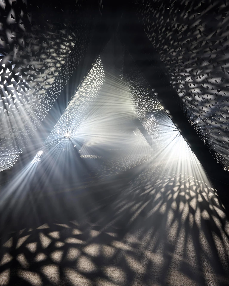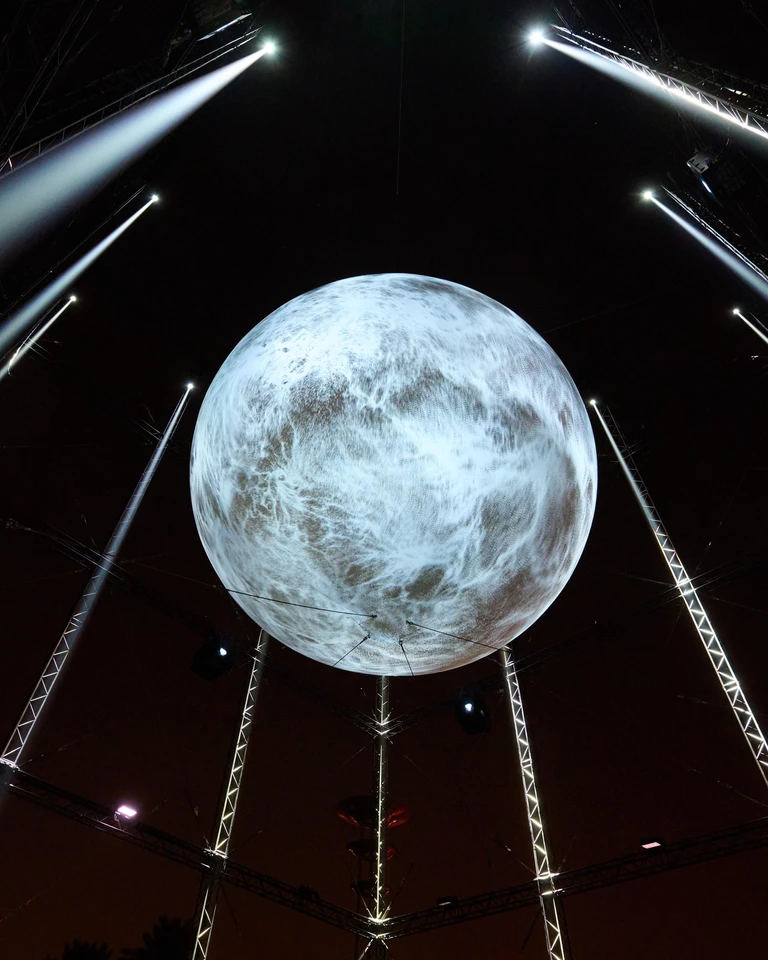 Z innej perspektywy do tematu podeszło włoskie studio fuse*. Ich instalacja Luna Somnium przetwarza szczegółowe dane księżycowe w multisensoryczne doświadczenie, zamykając kosmiczną obserwację w surowej, metalowej strukturze.