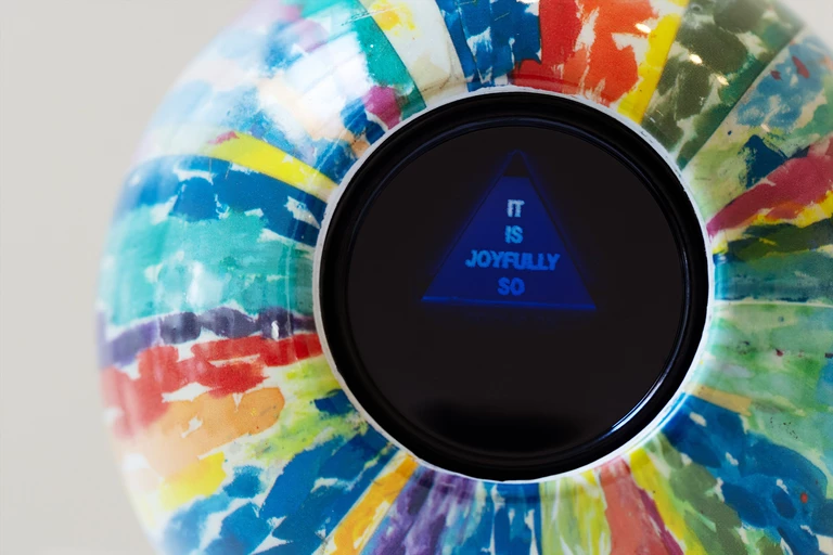 Magic 8 Ball® x Alma Woodsey Thomas – kultowa kula przepowiedni w wersji inspirowanej abstrakcyjnym dziełem Untitled Almy W. Thomas, z dziewięcioma autorskimi, inspirującymi komunikatami.