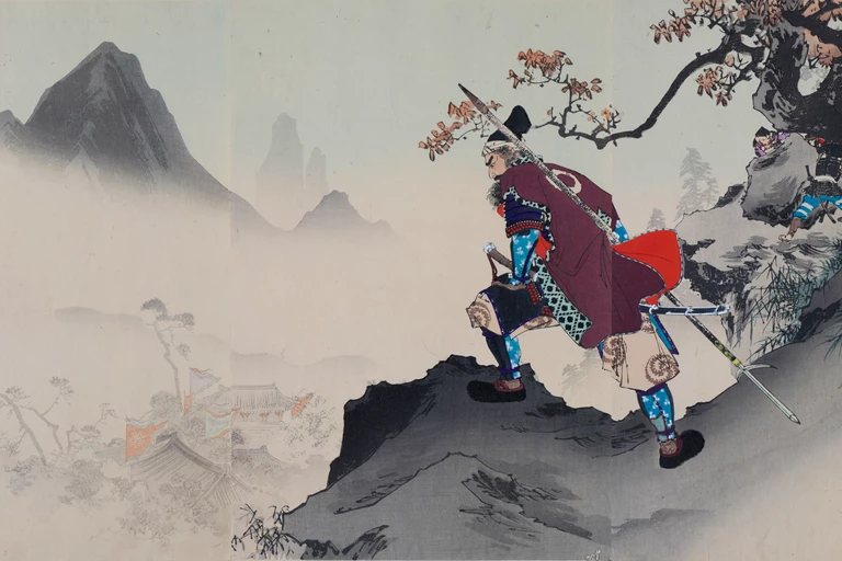 Mizuno Toshikata (1866–1908) to jeden z najwybitniejszych twórców grafik o tematyce historycznej, kontynuator tradycji zapoczątkowanej przez jego poprzedników – Utagawę Kuniyoshiego i Tsukiokę Yoshitoshiego. Opracowywał niezliczone tryptyki przywołujące wspaniałą przeszłość Japonii w czasie, gdy zachodziła potrzeba umacniania w narodzie dumy z własnej historii i państwowości.