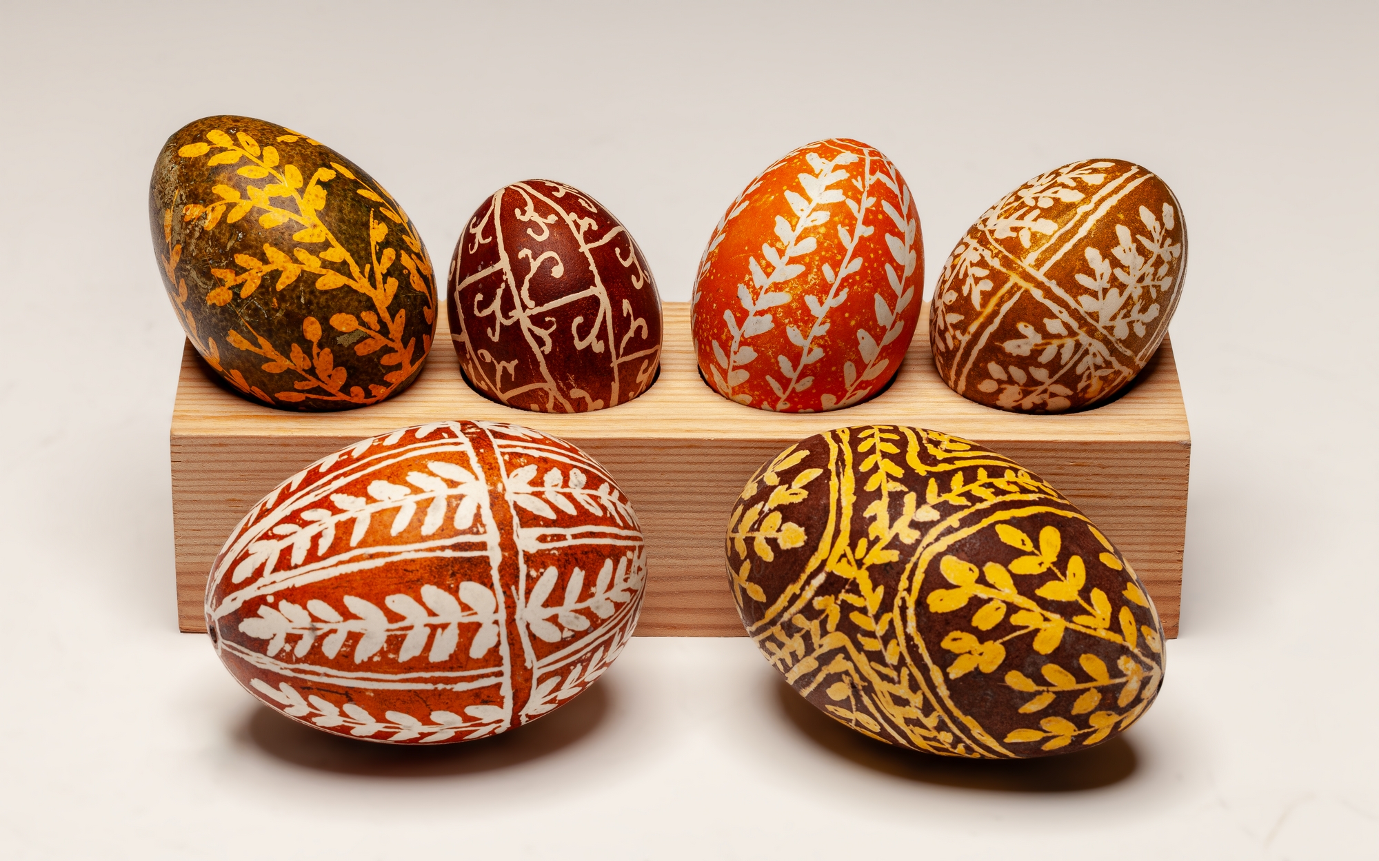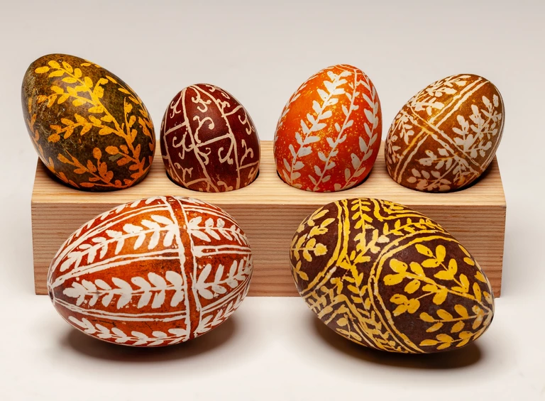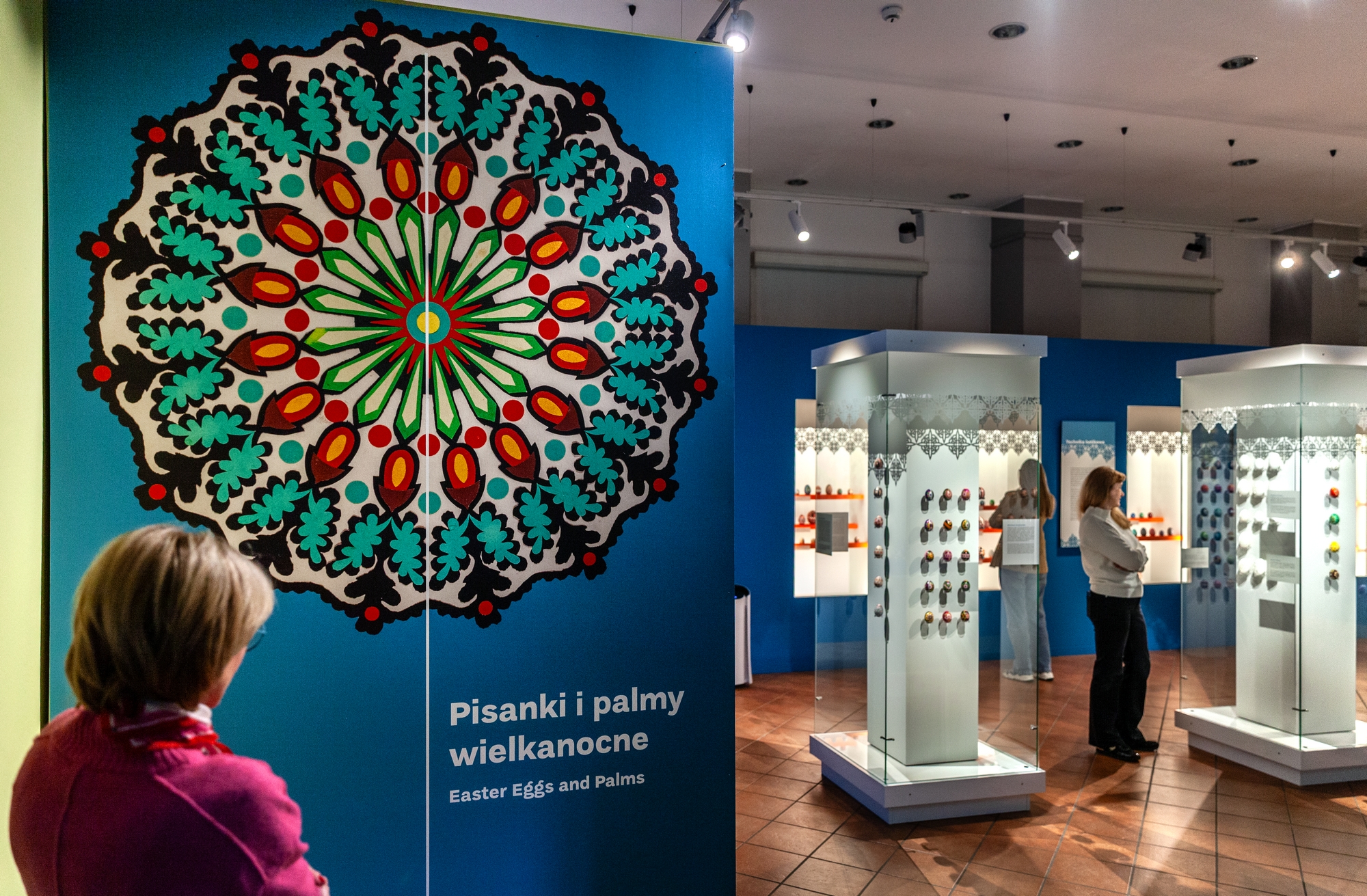 Na wystawie znajdują się przede wszystkim współczesne atrybuty Wielkiej Nocy wykonane według dawnych i nowych metod rękodzielniczych. Zobaczyć można między innymi jaja oklejane miniaturowymi wycinankami, rdzeniem sitowia i słomą, a także prace zdobione włóczką oraz haftem krzyżykowym. Obok nich pojawiają się opolskie kroszonki oraz pisanki nawiązujące do motywów huculskich, suwalskich, opolskich, rzeszowskich i wołyńskich, jak również innych współczesnych tradycji wywodzących się z dawnych Kresów Wschodnich. Taki wybór pozwala zobaczyć nie tylko różnorodność technik, lecz także trwałość ornamentów, które mimo zmieniających się kontekstów wciąż pozostają czytelne i nośne.