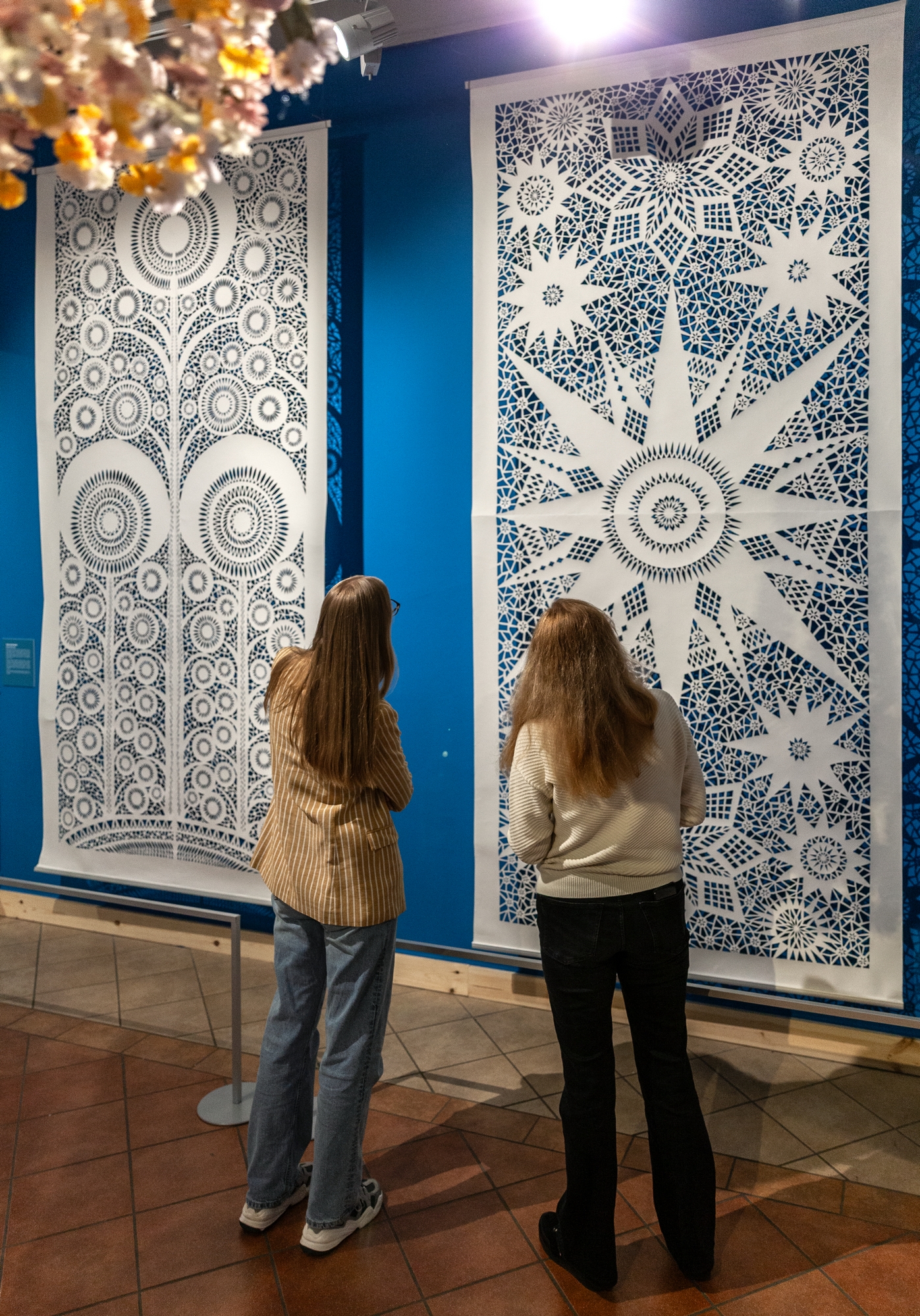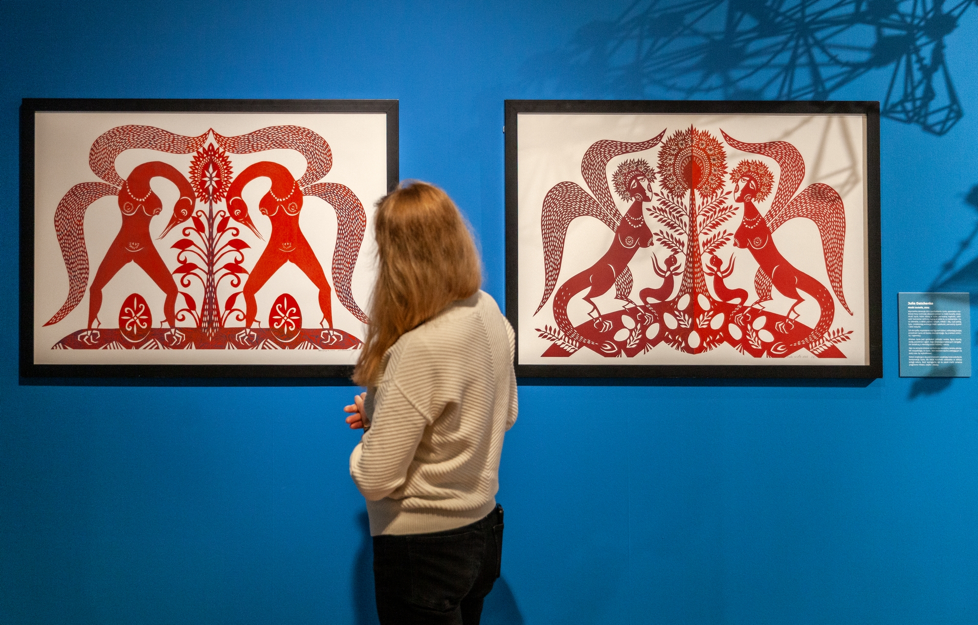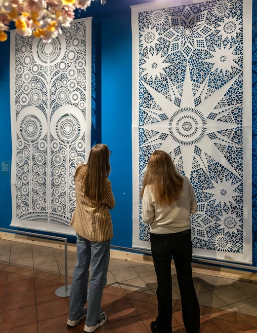 Ważnym elementem tegorocznej ekspozycji są wielkoformatowe wycinanki Julii Datchenko, współczesnej artystki zajmującej się pisankarstwem i wycinankarstwem. Jej misternie opracowane papierowe kompozycje obrazują mit o pochodzeniu życia i kobiecej mocy twórczej. W zestawieniu z nimi pokazane są zabytkowe wycinanki dolnośląskie z lat 60. i 70. XX wieku, odwołujące się do tradycyjnych wzorów lwowskich, wileńskich i łowickich. To spotkanie prac współczesnych i historycznych jest jednym z kluczowych punktów wystawy, bo pozwali prześledzić ciągłość form, motywów i symboli, które od dekad pozostają obecne w polskiej kulturze ludowej.