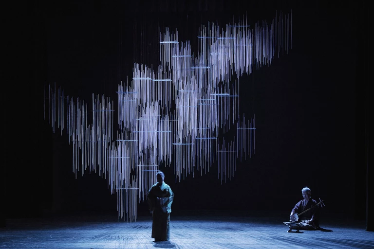 Ta wyjątkowo poetycka instalacja została stworzona przez japońską pracownię NAKAMURA KAZUNOBU DESIGN-WORKS. Dedykowana jest sztuce tańca.
