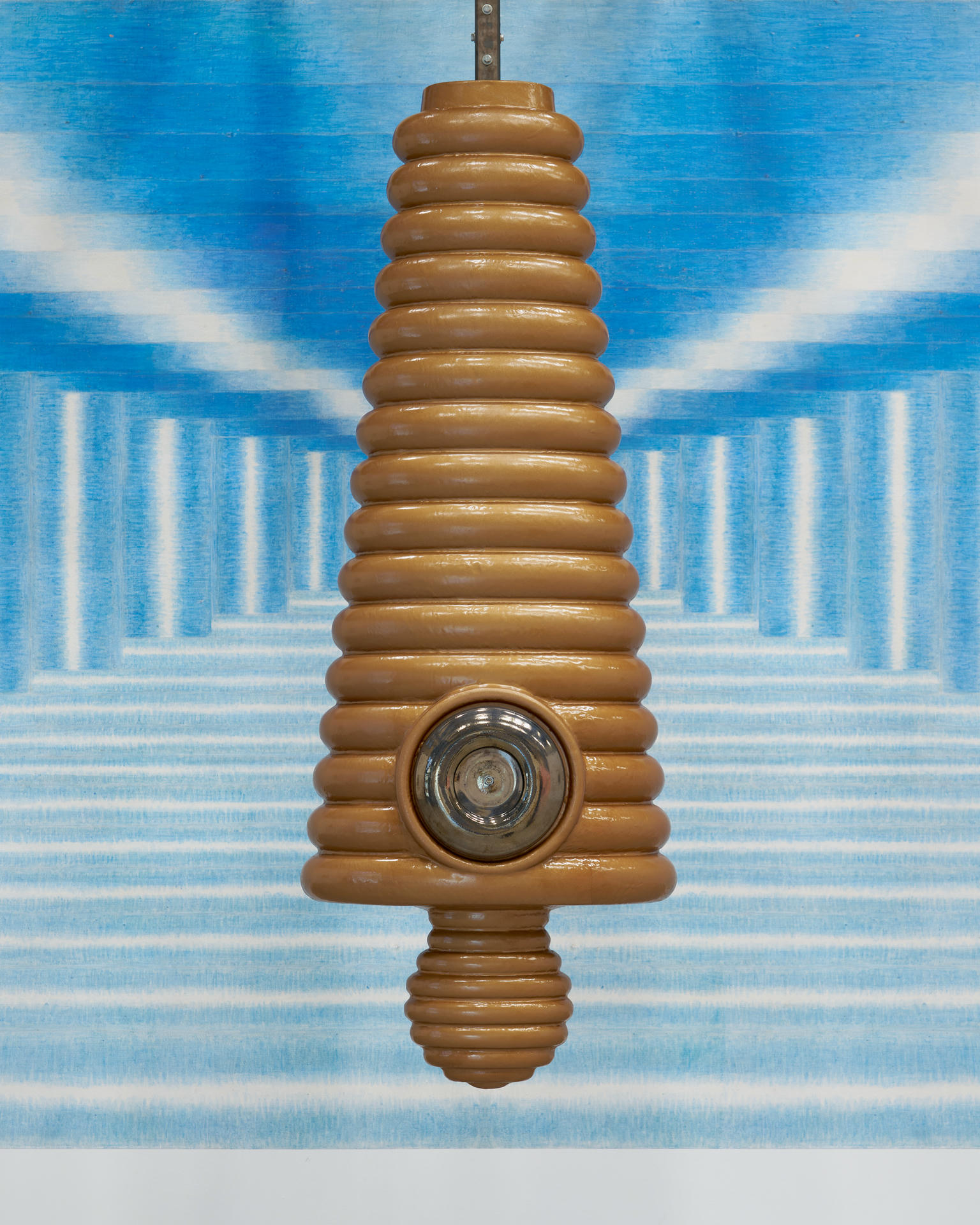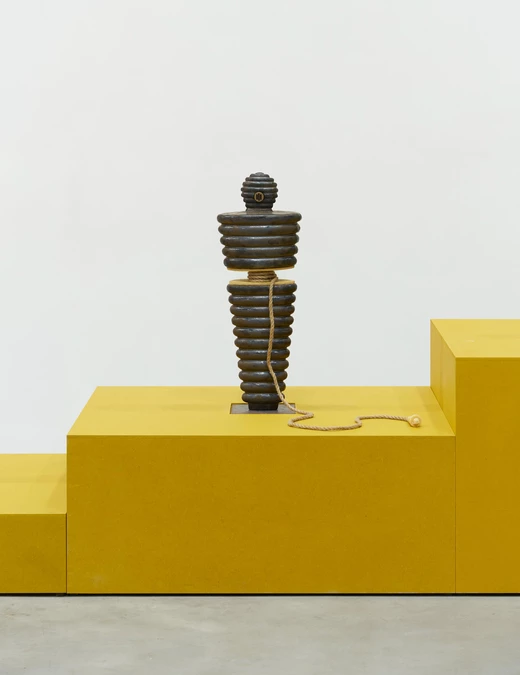 Rafał Zajko, „Szpulka II (Wydech)”, 2023, ceramika, brąz, lina. Fot. Tomasz Koszewnik