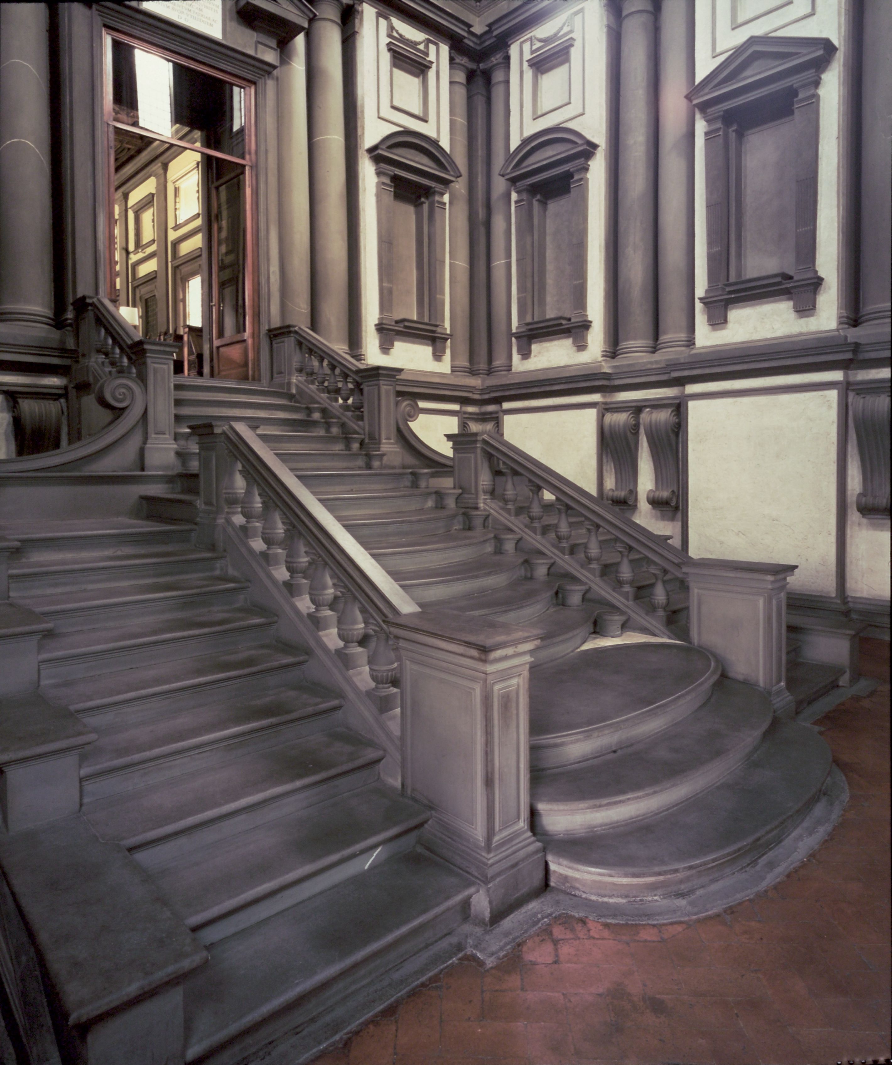 Vestibule of the Biblioteca Medicea Laurenziana, Florence, Prawa do zdjęcia: Courtesy Ministero della Cultura - Biblioteca Medicea Laurenziana