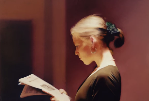Gerhard Richter, Lesende [Woman reading], 1994 (CR 804) Olej na płótnie, 72 x 102 cm Kolekcja SFMOMA Zakupiono dzięki darom od Mimi and Peter Haas and Helen and Charles Schwab, and the Accessions Committee Fund: Barbara and Gerson Bakar, Collectors Forum, Evelyn D. Haas, Elaine McKeon, Byron R. Meyer, Modern Art Council, Christine and Michael Murray, Nancy and Steven Oliver, Leanne B. Roberts, Madeleine H. Russell, Danielle and Brooks Walker, Jr., Phyllis C. Wattis, and Pat and Bill Wilson © Gerhard Richter 2025 (18102025)