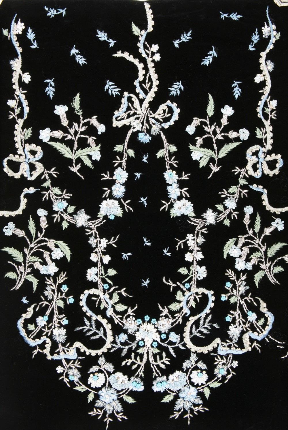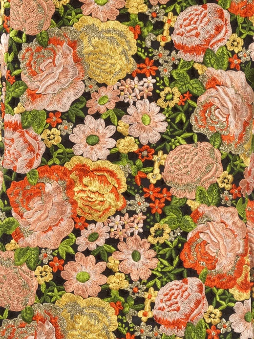 Motywem przewodnim, podejmowanym przez style i techniki był kwiat, występujący tutaj w rozmaitych wariacjach. Wystawa podkreśla jego znaczącą rolę w modzie i sztuce tekstylnej, szczególnie w XVIII wieku. Kwiat pojawi się na brokatowej tkaninie kamizelki i laserowych nadrukach w kreacji Balenciagi, w ozdobnym wzorze koronki Chantilly i w słynnej kamelii Gabrielle Chanel.