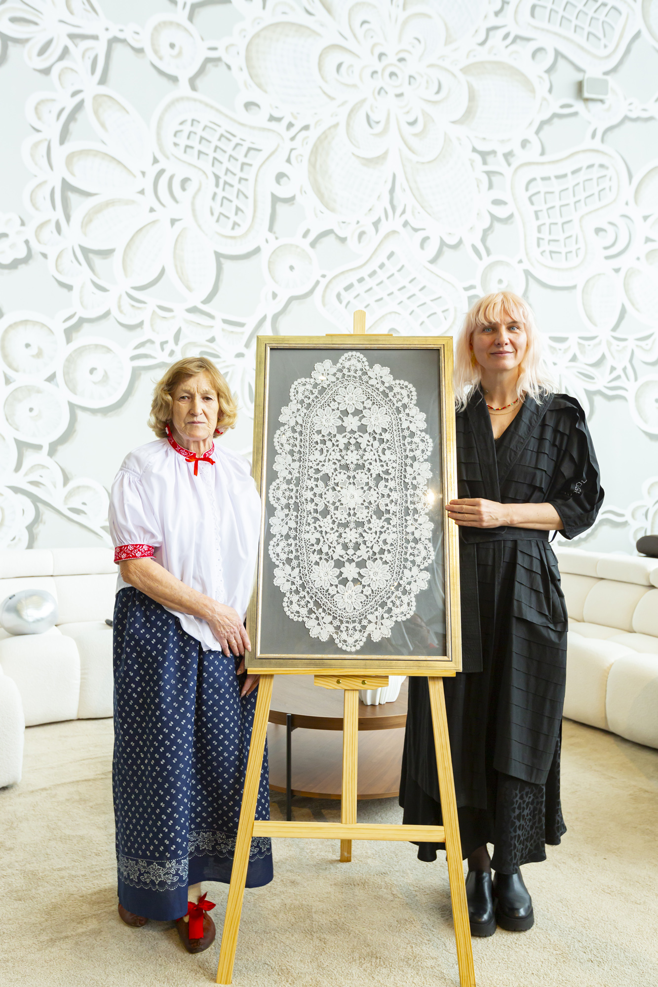 Sercem tego projektu jest dialog między tradycyjnym rzemiosłem a współczesną sztuką miejską. Motyw, który ozdobił budynek, opiera się na autorskim wzorze Heleny Wróbel, mistrzyni z Centrum Koronki Koniakowskiej. Podczas premiery obie twórczynie opowiadały o procesie tłumaczenia drobnego, ręcznego splotu na język monumentalnej malatury, podkreślając, że mimo zmiany skali, praca zachowała swoją organiczną lekkość i precyzję detalu.