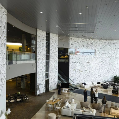 Warszawska Domoteka zaprezentowała finalny efekt współpracy z NeSpoon. Wielkoformatowy mural, który powstawał na elewacji obiektu, stał się nową dominantą wizualną tej przestrzeni. Artystka, znana z przenoszenia koronkarskich splotów do sfery publicznej, tym razem postawiła na wzór o konkretnym rodowodzie, zmieniając surową ścianę w subtelną, ażurową kompozycję.