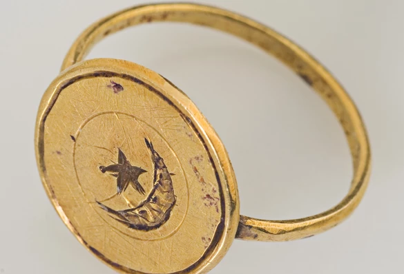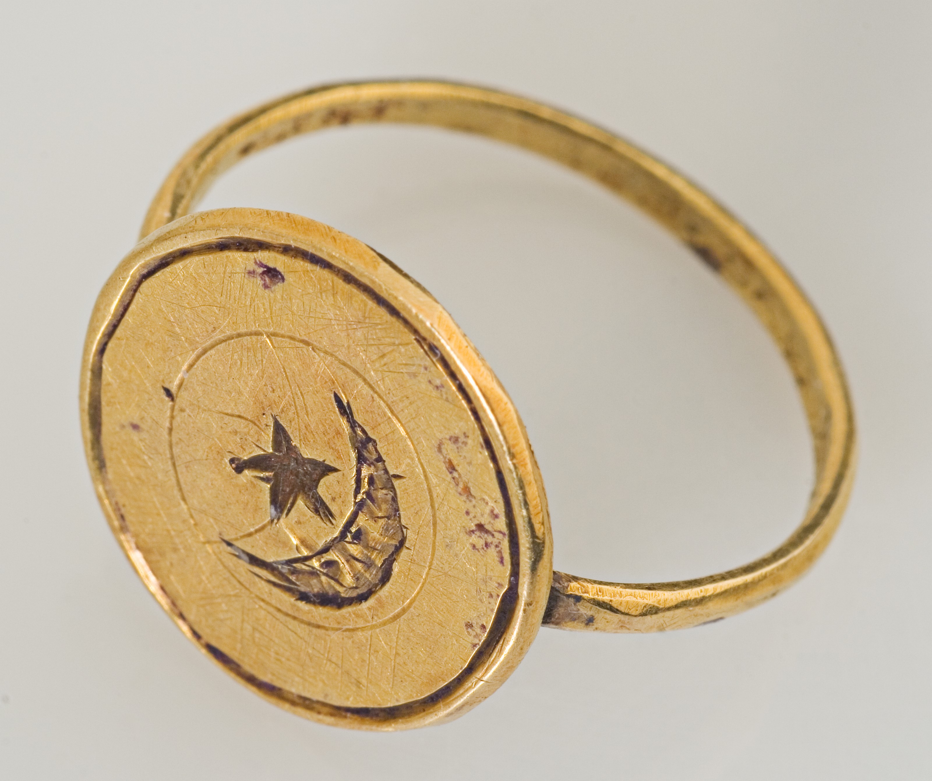 Pierścień z symbolem księżyca i gwiazdy, XIII w. – 1. połowa XIV w., Europa Środkowa, Muzeum Narodowe we Wrocławiu
