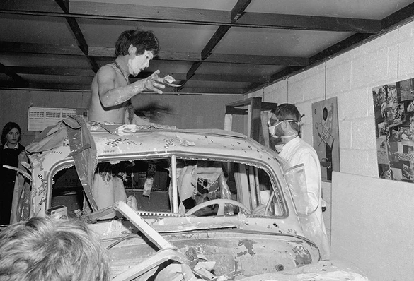 Yoshio Nakajima, Jasper Grootveld, Thom Jaspers, Traffic in Town, 1965, performans w Galerie Honger w Shiedam w Holandii, fot. Cor Jaring [Nakajima Family Archive]