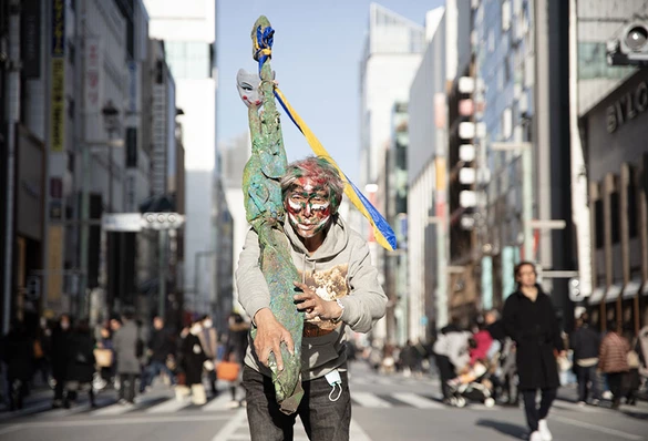Yoshio Nakajima, Performans uliczny w Tokio, 2023, fot. Sakae Okatomi
