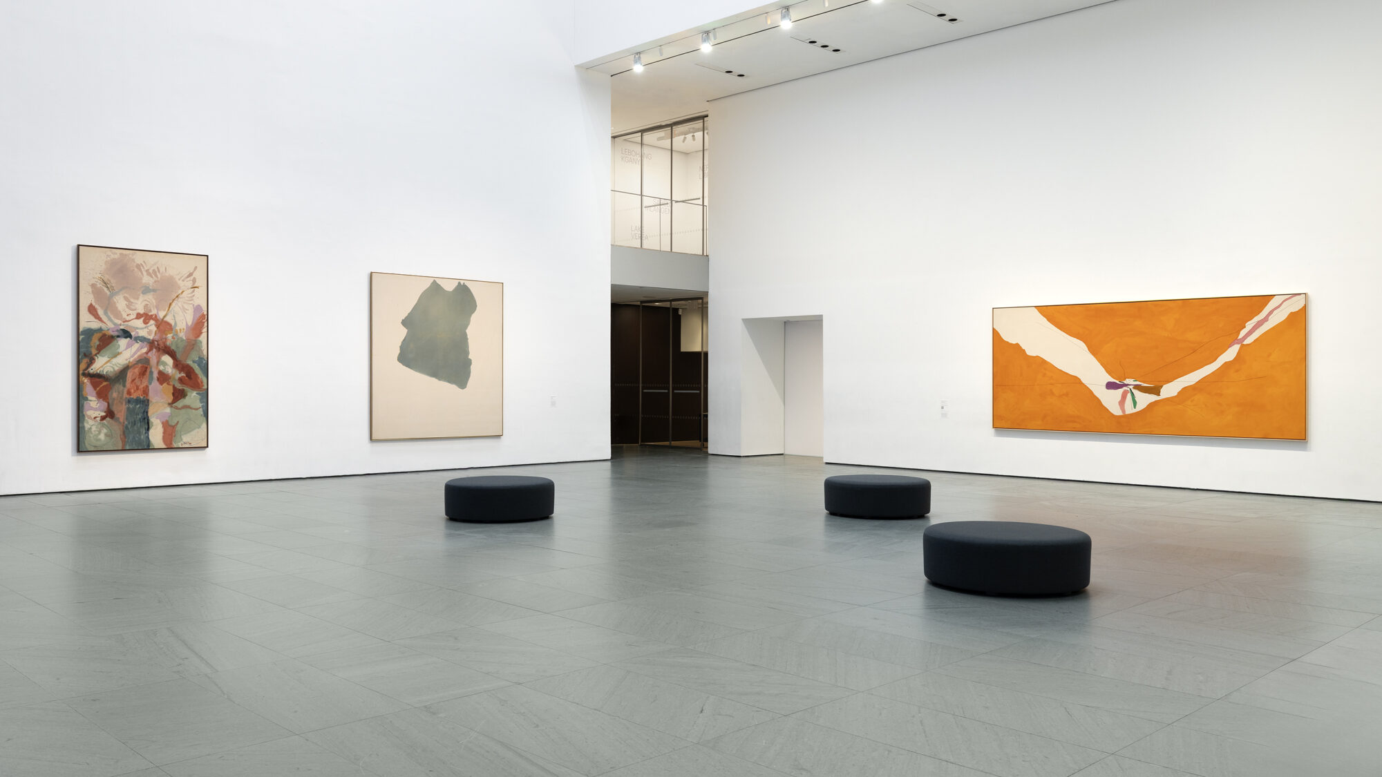 Instalacja przygotowana została w jednej z najbardziej spektakularnych przestrzeni MoMA – wysokim, otwartym atrium, którego skala podkreśla rozmach charakterystyczny dla malarstwa Helen Frankenthaler. Kuratorski duet zdecydował się na kameralny wybór prac. Tworzą go Samantha Friedman oraz Elizabeth Wickham. Zamiast obszernej przekrojowej wystawy powstała wyrazista kompozycja kilku kluczowych płócien, która prowadzi widza przez najważniejsze etapy rozwoju malarstwa artystki.