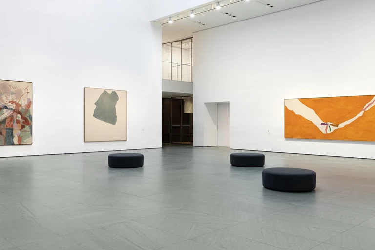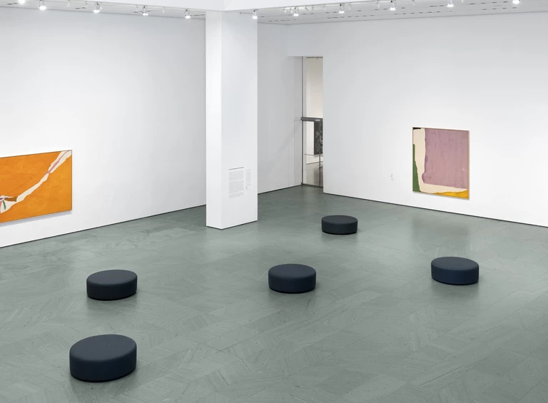 „Helen Frankenthaler: A Grand Sweep” zaprasza widzów do doświadczenia głębi i zmienności twórczości artystki. Zaledwie pięć obrazów wystarcza, by zobaczyć, jak na przestrzeni ponad trzydziestu lat artystka rozwijała własny język – od wcześniejszych, bardziej otwartych kompozycji po późne, ciemniejsze i cięższe płótna.