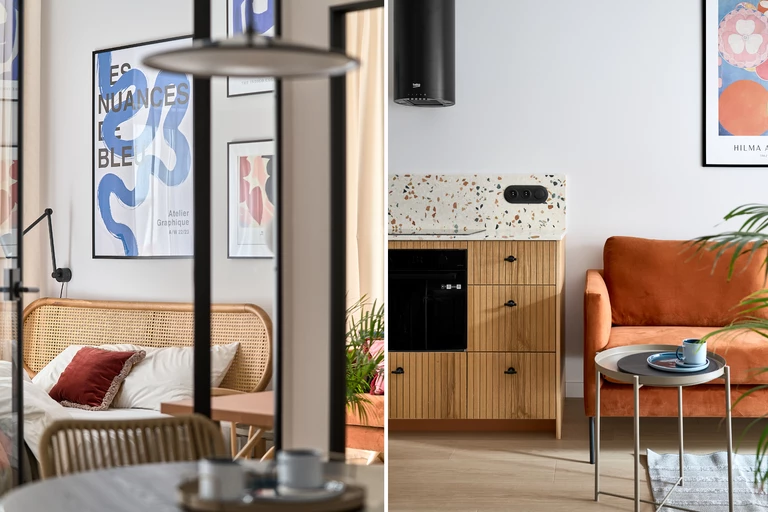 Mieszkanie mieści się w nowej inwestycji na poznańskich Jeżycach. To jedna z najmodniejszych dzielnic miasta, która w ostatnich latach przezywa rozkwit. Wnętrze, do którego zaglądamy, przeznaczone jest na wynajem. Takie lokale często urządzane są w stylu uniwersalnym, który ma schlebiać wielu gustom. W tym przypadku miało być inaczej. Właścicielka mieszkania chciała, by zaprojektowano je wbrew zasadzie „musi podobać się wszystkim”. Wskazówkami, jakie przekazała projektantce, były inspiracje przywiezione z licznych podróży. Aranżacja miała się też zmieścić w ograniczonym budżecie, co było jednym z wyzwań podczas pracy nad projektem wnętrza.