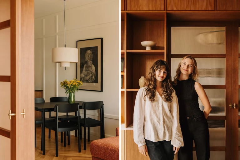 Specjalnie na potrzeby mieszkania zaprojektowano szereg mebli, takich jak ozdobny regał w salonie, zabudowa kuchenna, szafy, stoliki nocne oraz elegancki zagłówek. Wnętrze dopełniają starannie dobrane produkty od renomowanych marek: kanapa marki Sits, krzesła Normann Copenhagen, stolik kawowy i półka nad sofą marki Audo Copenhagen czy oświetlenie z kolekcji Margin marki New Works.