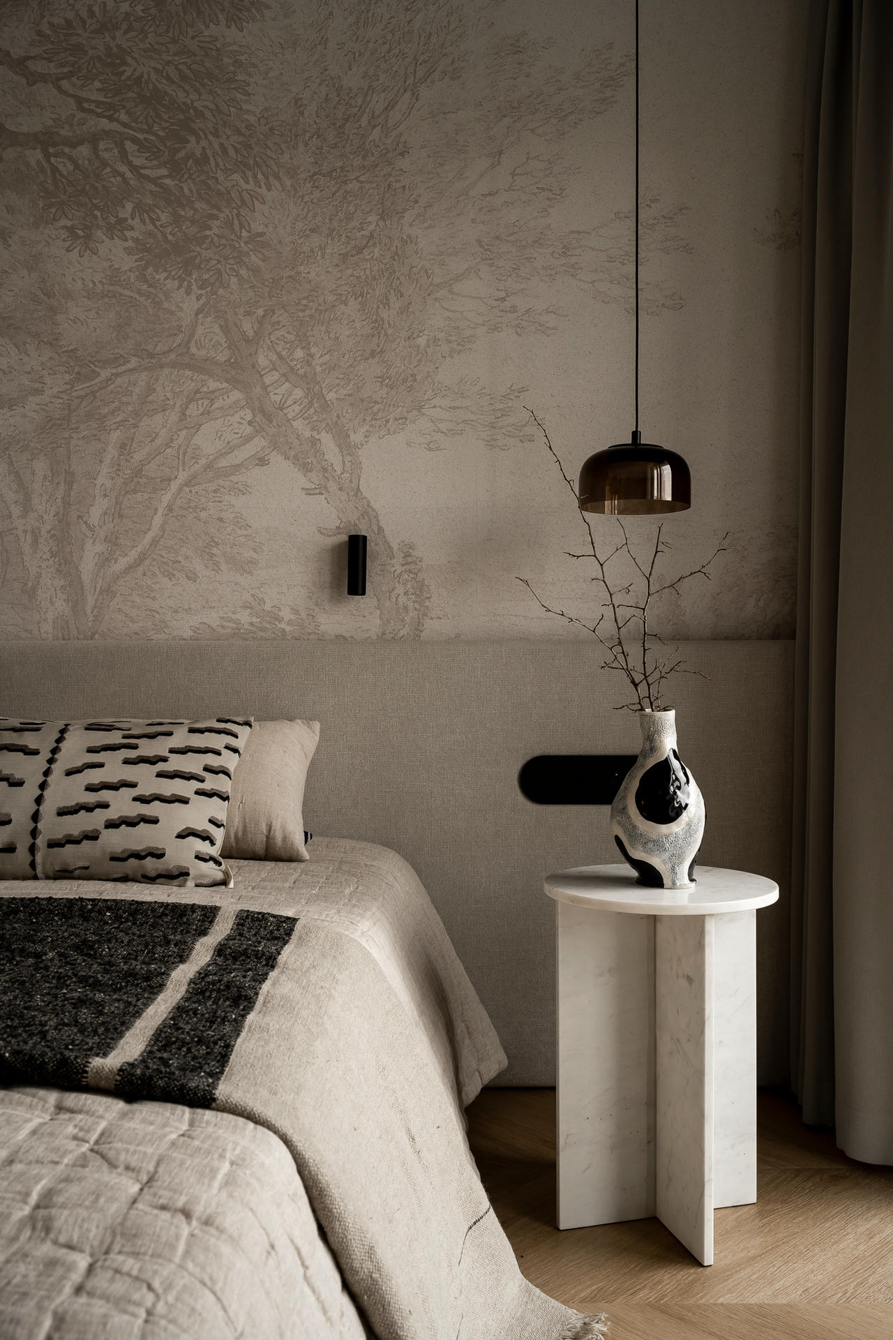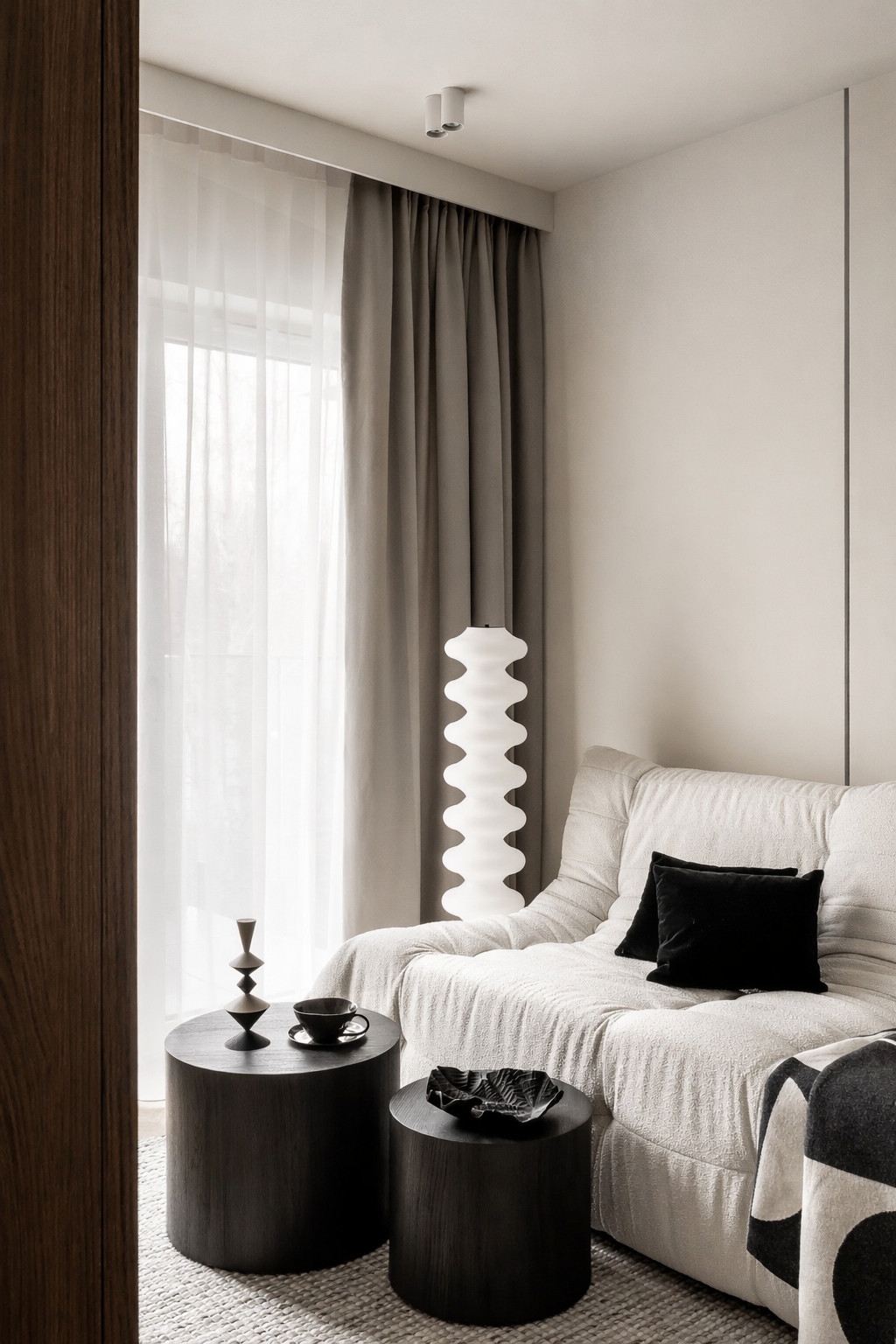 To mieszkanie od początku miało jasno określoną funkcję: miało być odpowiedzią na potrzebę zwolnienia, ograniczenia bodźców i odzyskania równowagi w świecie przesyconym bodźcami. Karolina Holda z Holda Studio zaprojektowała 51-metrowe wnętrze jako prywatny azyl dla właścicieli.