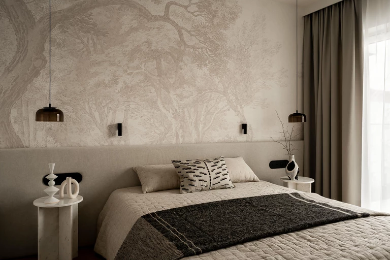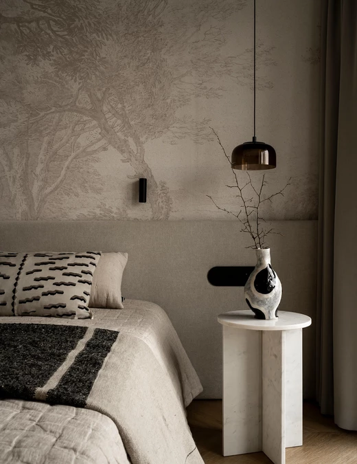 Inspiracje japandi i wabi-sabi wyczuwalne są tu nie w dekoracjach, lecz w samym podejściu do projektowania. Jest prosto, ale nie surowo; spokojnie, ale nie pusto.