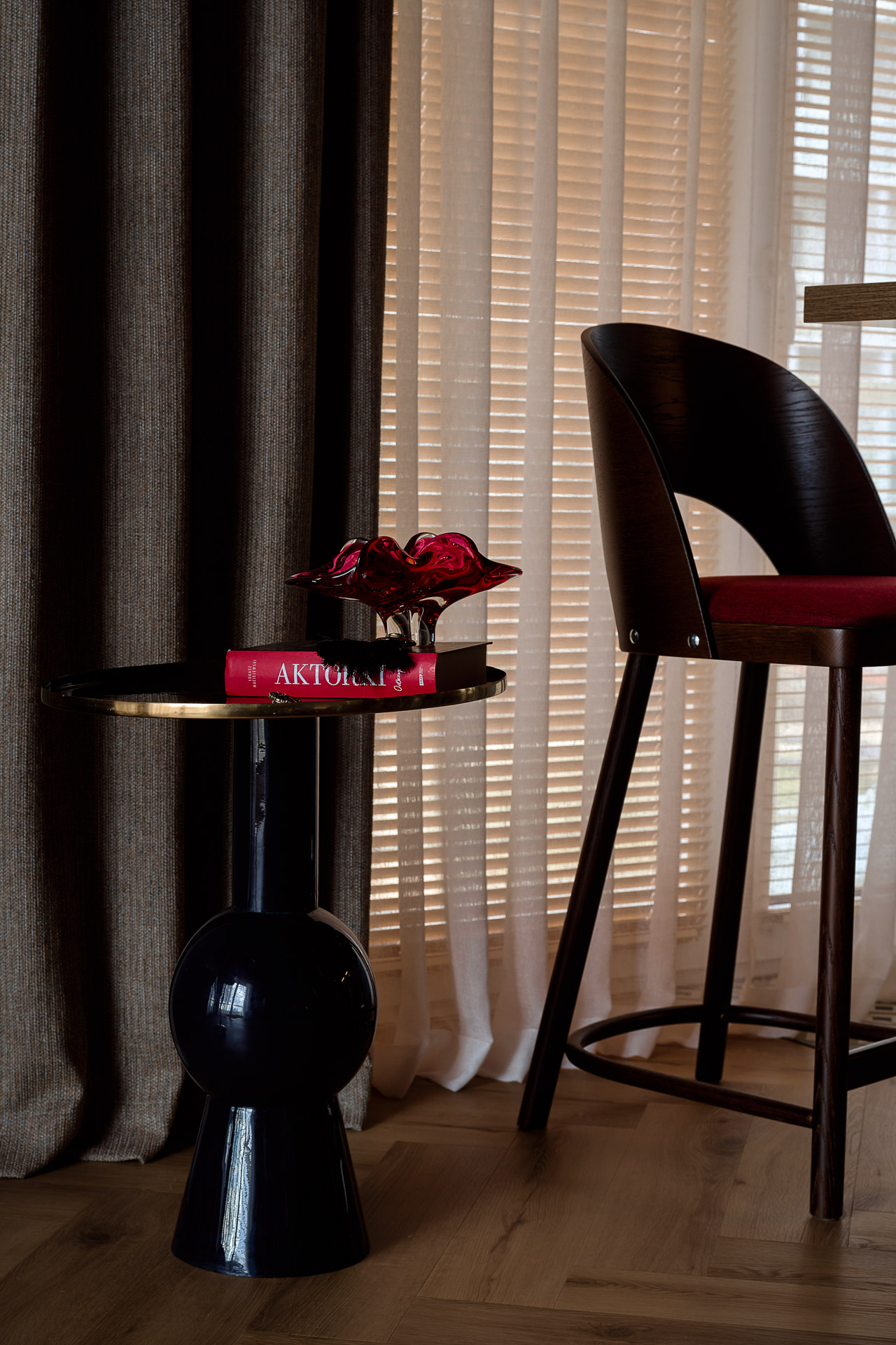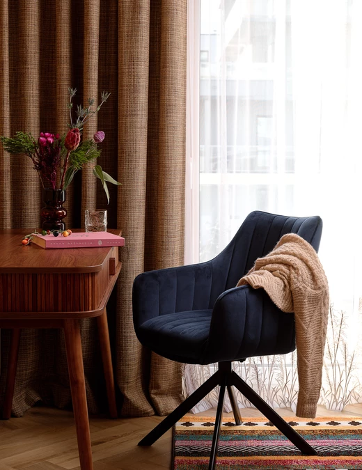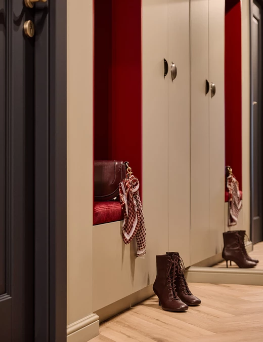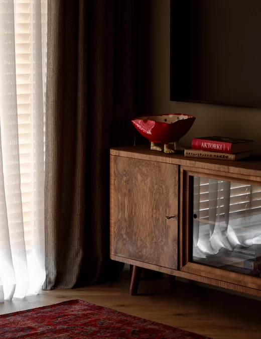Folklorystyczne inspiracje, głębokie bordo i obiekty z historią tworzą charakter tego 60-metrowego mieszkania w Legnicy. Projekt Moniki Staniec powstał dla młodej pary, która marzyła o wnętrzu odważnym, bardzo osobistym i zupełnie innym niż większość współczesnych realizacji.