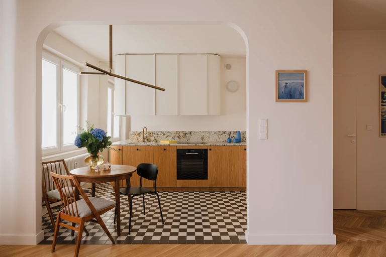 Zaprojektowane przez Magdę i Dominikę z pracowni The Line Studio mieszkanie o powierzchni 65 m² znajduje się w cichej dzielnicy Krakowa, tuż przy Lasku Wolskim. Projekt idealnie odzwierciedla potrzeby właścicielki – młodej lekarki, która po intensywnych dniach pracy szuka odpoczynku i kontaktu z...