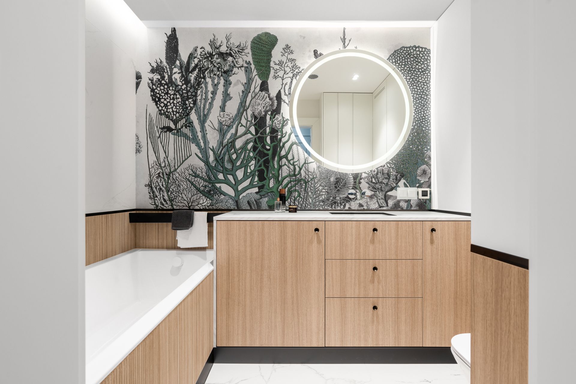 Szczególną satysfakcję przyniosło Annie Marii Sokołowskiej uzyskanie dwóch w pełni funkcjonalnych łazienek oraz dopracowanie trudnych przestrzeni, takich jak łazienka przy wejściu z trójkątnym układem. W efekcie powstało mieszkanie o niepowtarzalnym klimacie; dopracowane w każdym calu i wyraziste. Odważne kolory, materiały i detale tworzą tu całość, a każdy element ma swoje uzasadnienie.